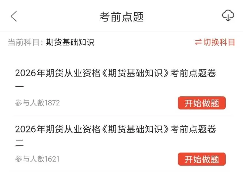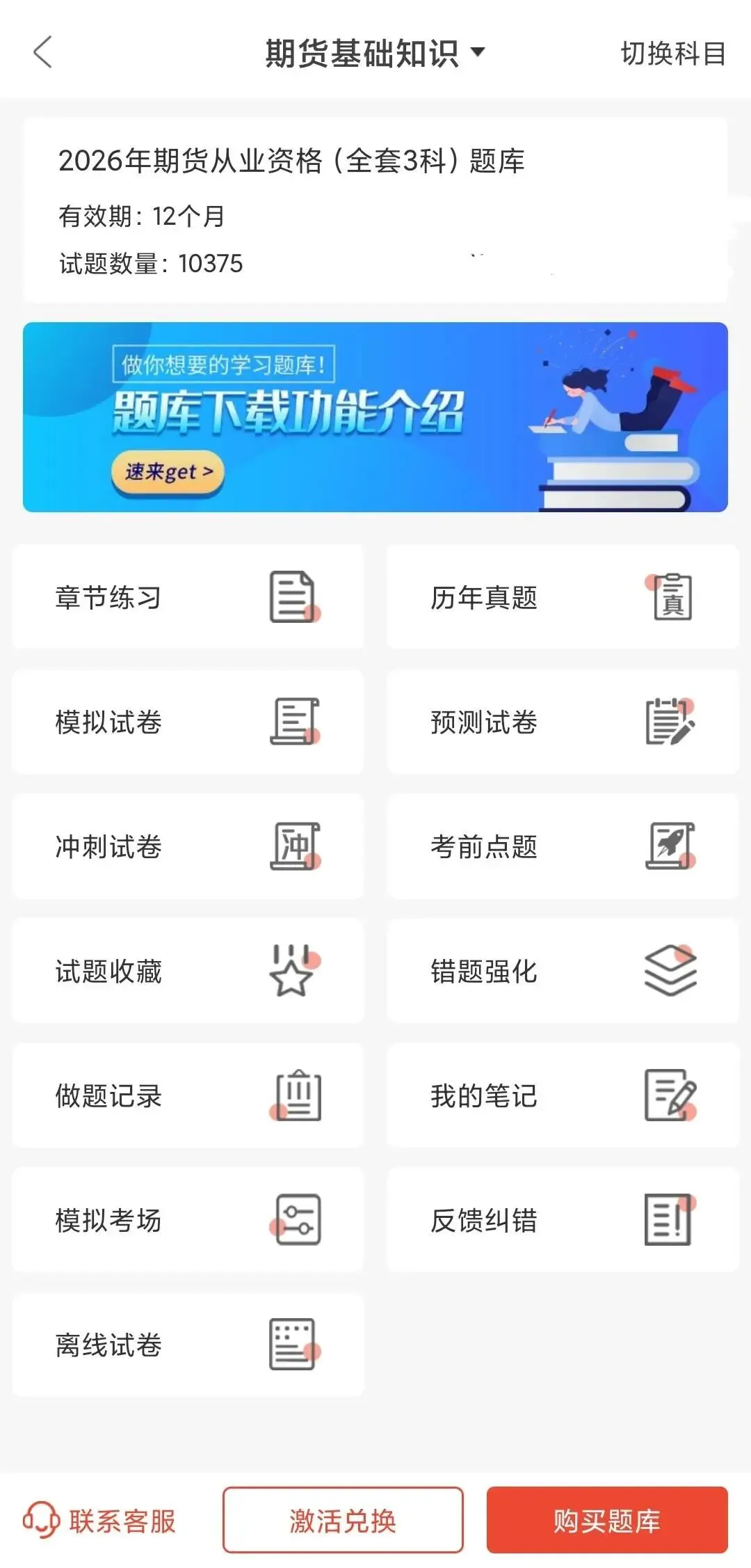 上岸必刷!2026期货从业资格考试题库app(历年真题+押题密卷) 关注并回复【题库】即可了解考试题库哦 大家好呀!我是小苏。 今天,小苏给大家带来了期货从业资格考试的备考题库。 一起来看吧: 如何获取题库? 1:关注【小苏备考库】 2:后台回复【题库】