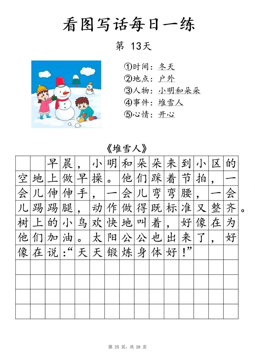 【一年级下册看图写话每日一练】PDF电子版
