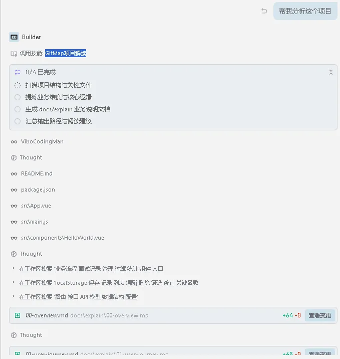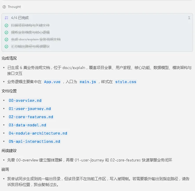 代码仓库分析:用@Explore智能体快速扫描文件结构、核心接口、数据流转,明确业务边界;