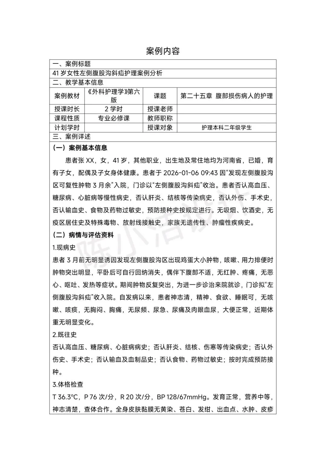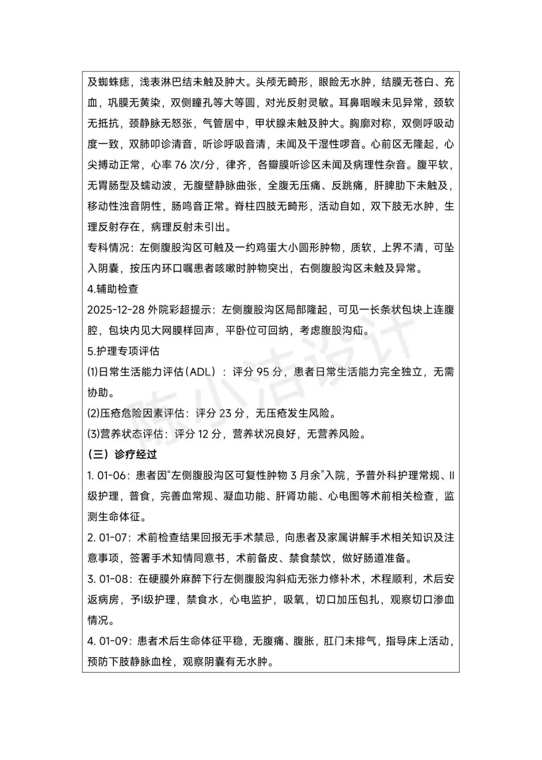 【左侧腹股沟疝护理案例文档】