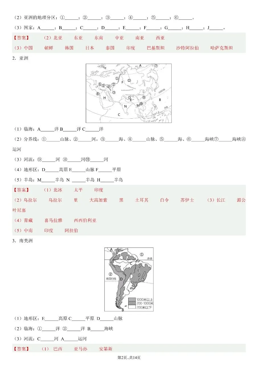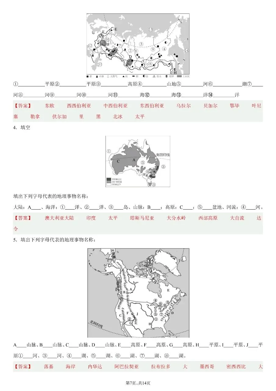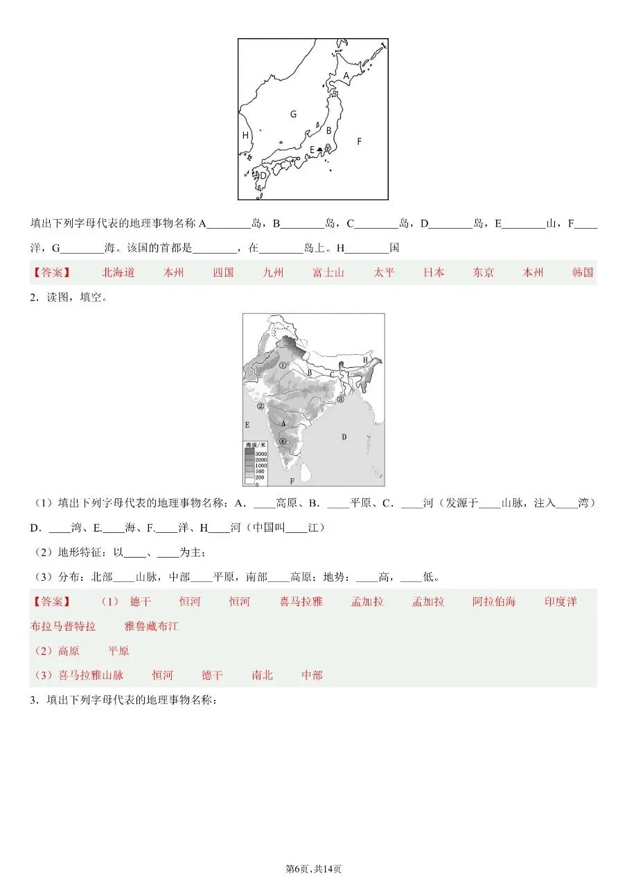 2026年最新版地理会考全册填图专练(教师版+学生版),有完整可打印,学霸学习好帮手,建议家长打印,学霸人手一份!