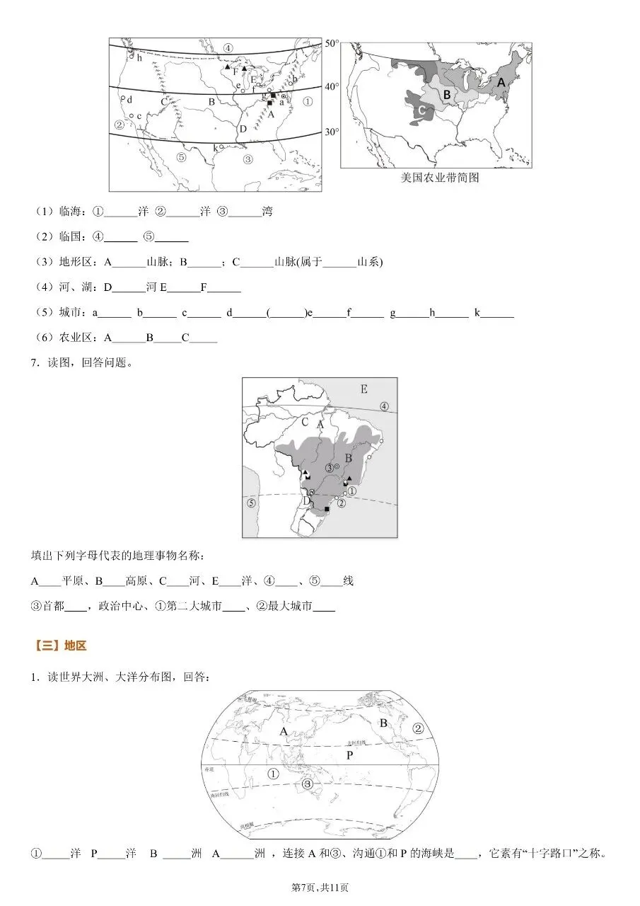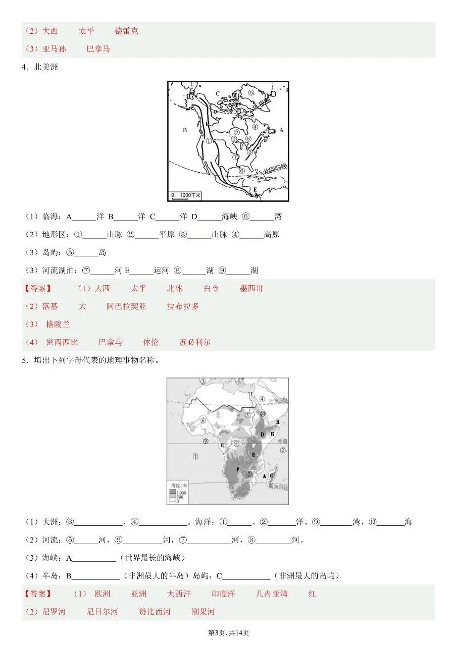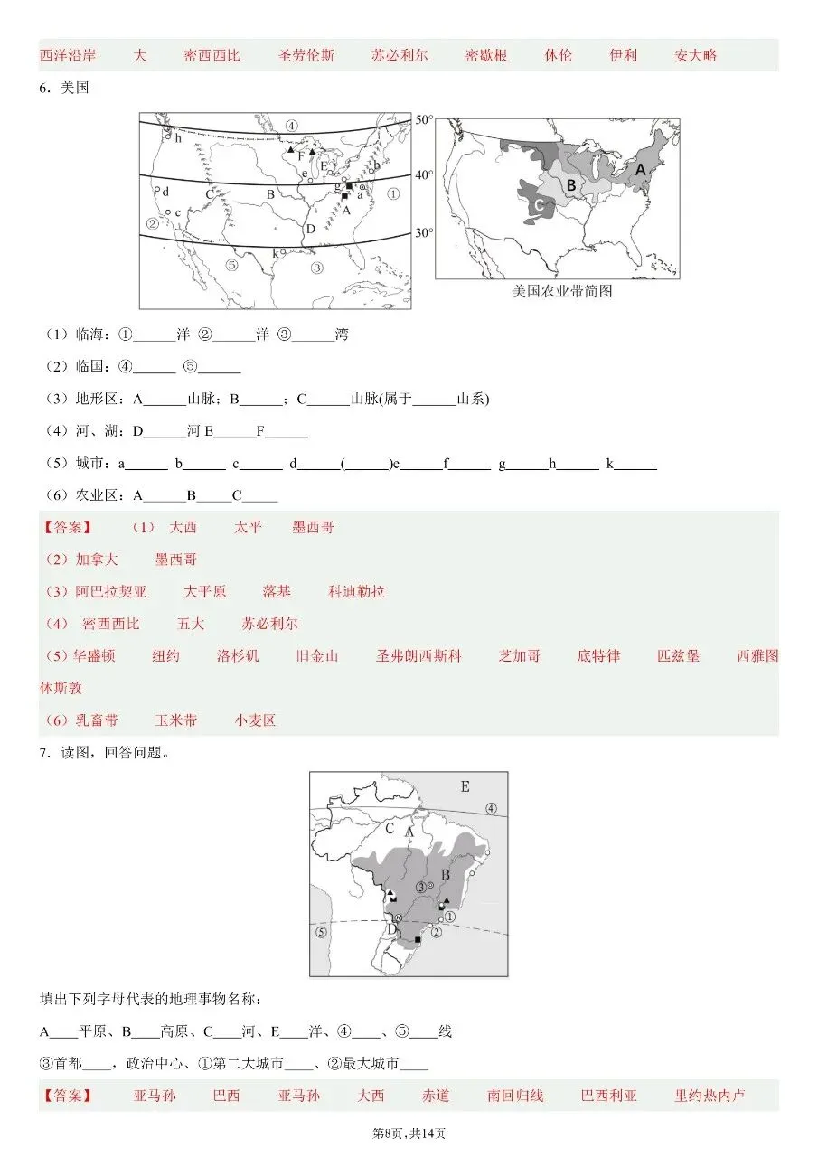 2026年最新版地理会考全册填图专练(教师版+学生版),有完整可打印,学霸学习好帮手,建议家长打印,学霸人手一份!