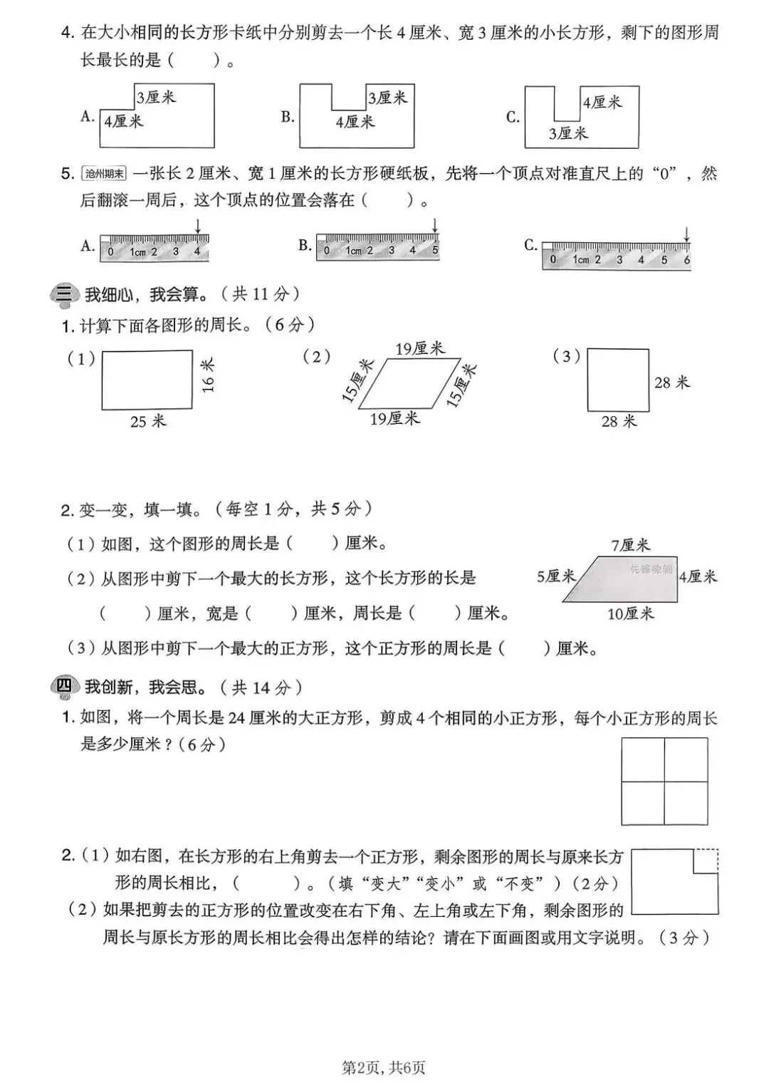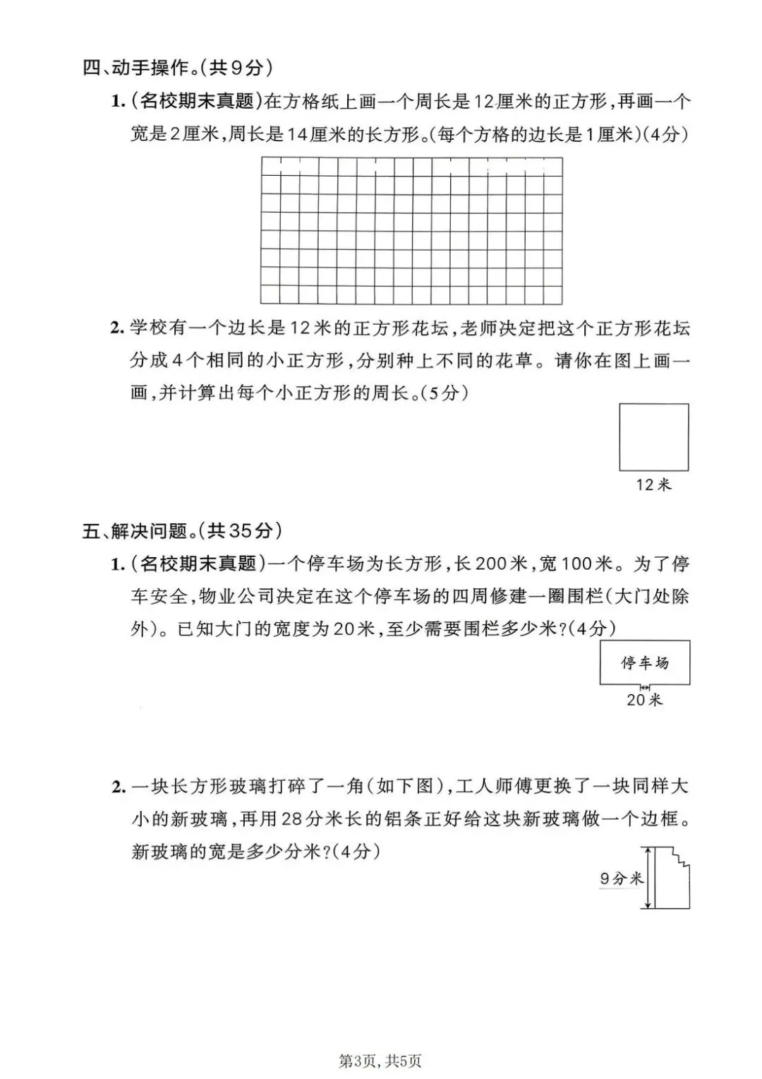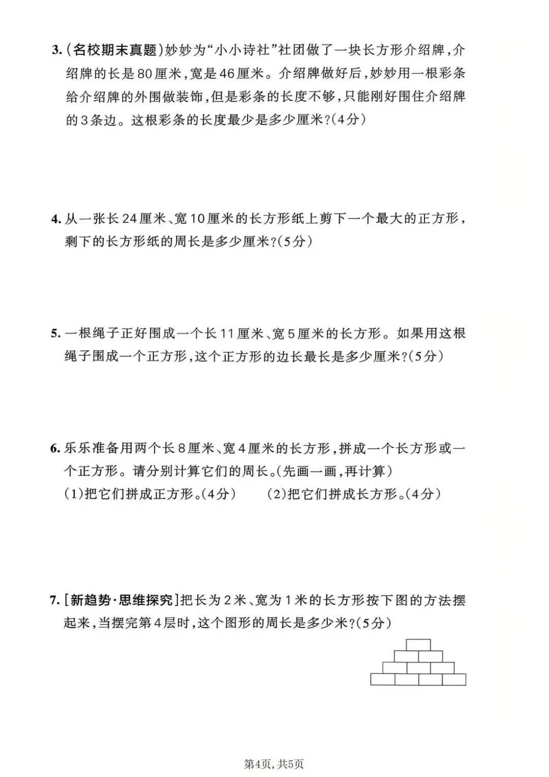 试卷内容层次分明,注重基础与能力并重。计算部分重点考查竖式计算过程的规范性与准确性,包括进位处理;理解部分通过填空、选择等形式检验对算理(如拆分法)的深层认知;应用部分则设计贴近生活的实际问题,如计算面积、解决购物、行程等复合情境问题,着重训练学生从复杂信息中提取数学条件、选择合理算法并完整解答的能力。
