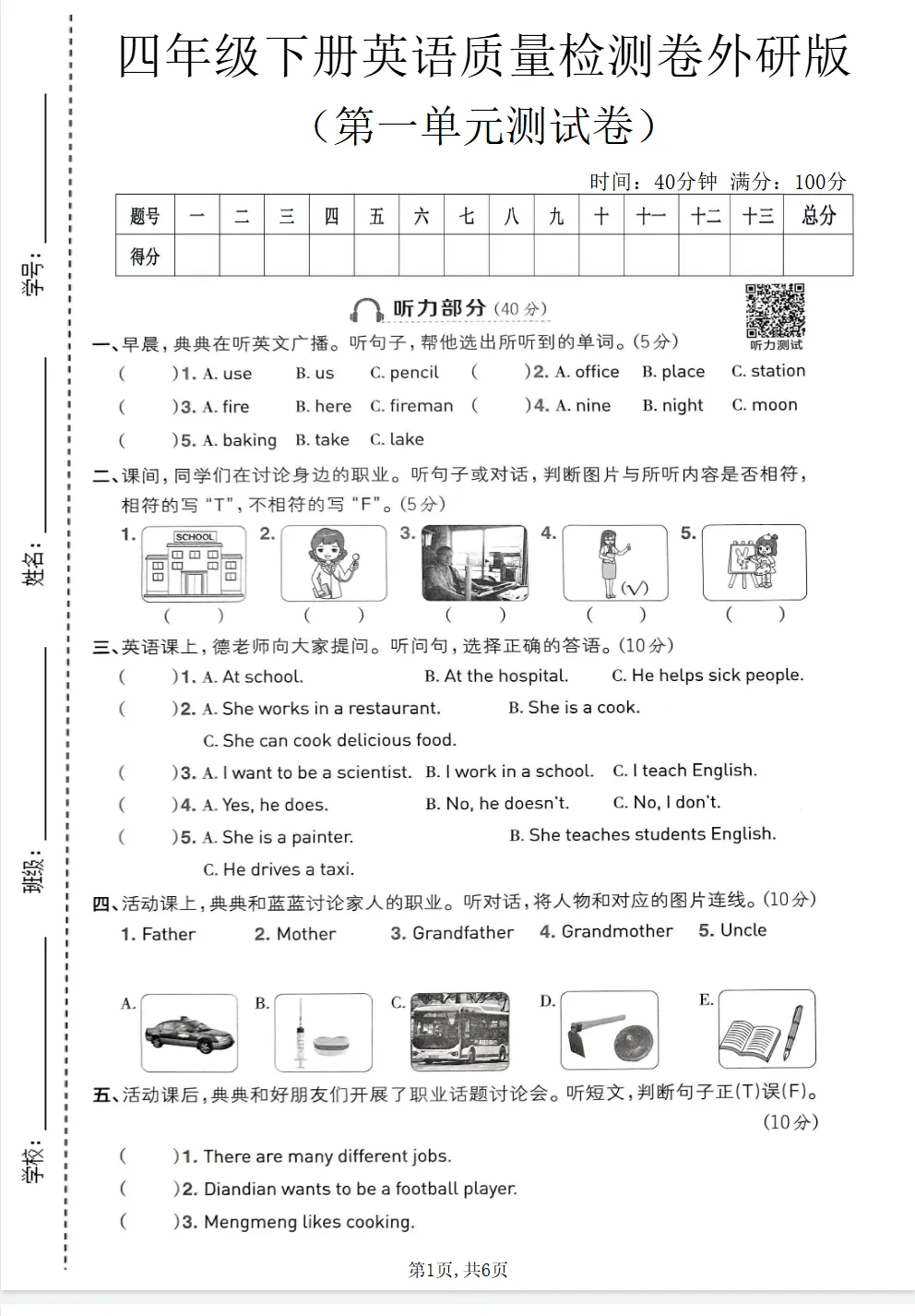 26春(外研版三起)小学英语 四年级下册《第一二三单元质量检测卷》(共3套)附听力含答案,含知识点归纳 PDF,可打印