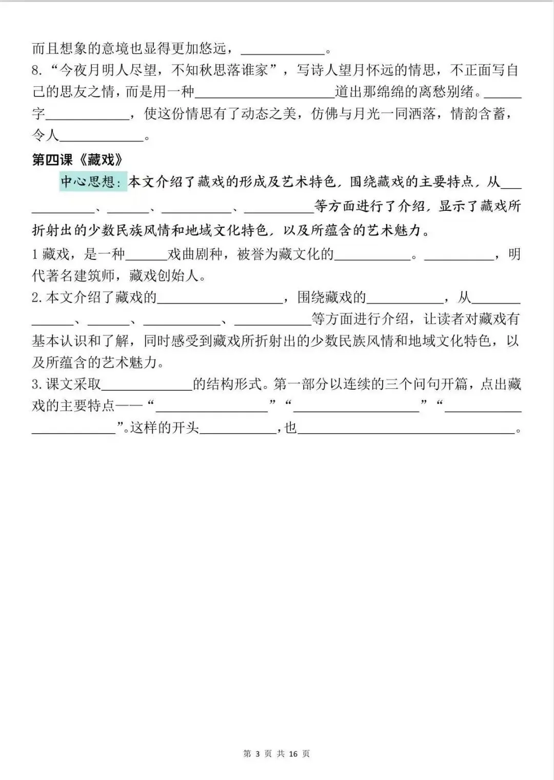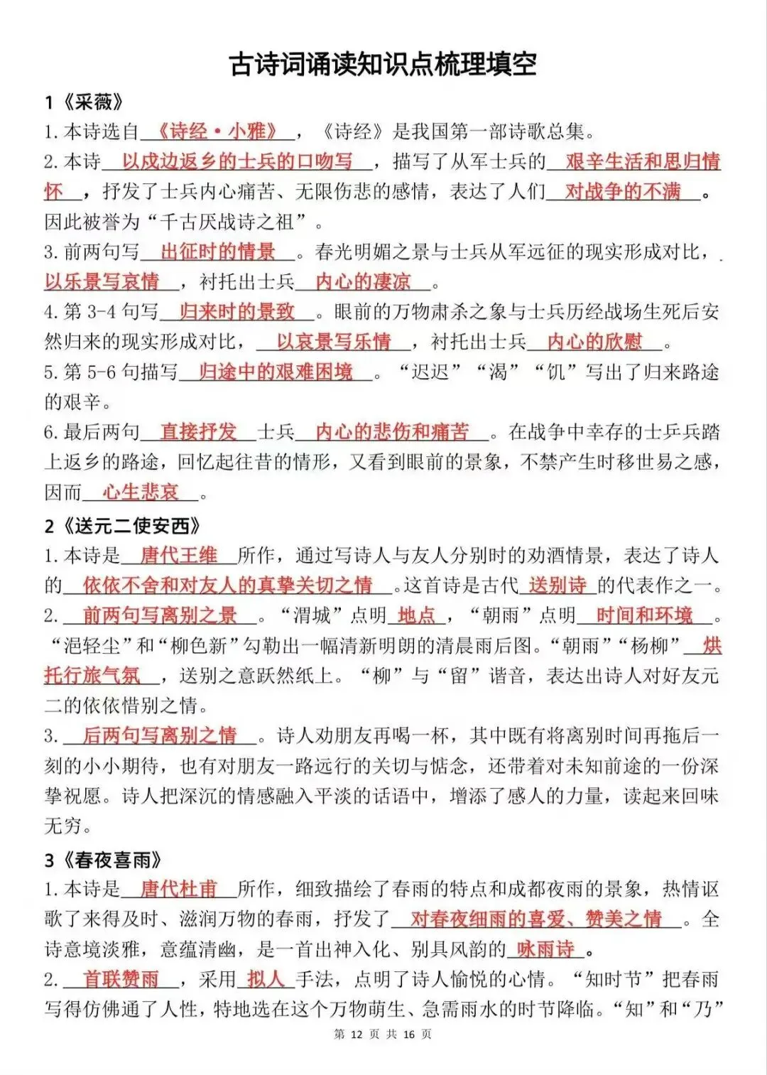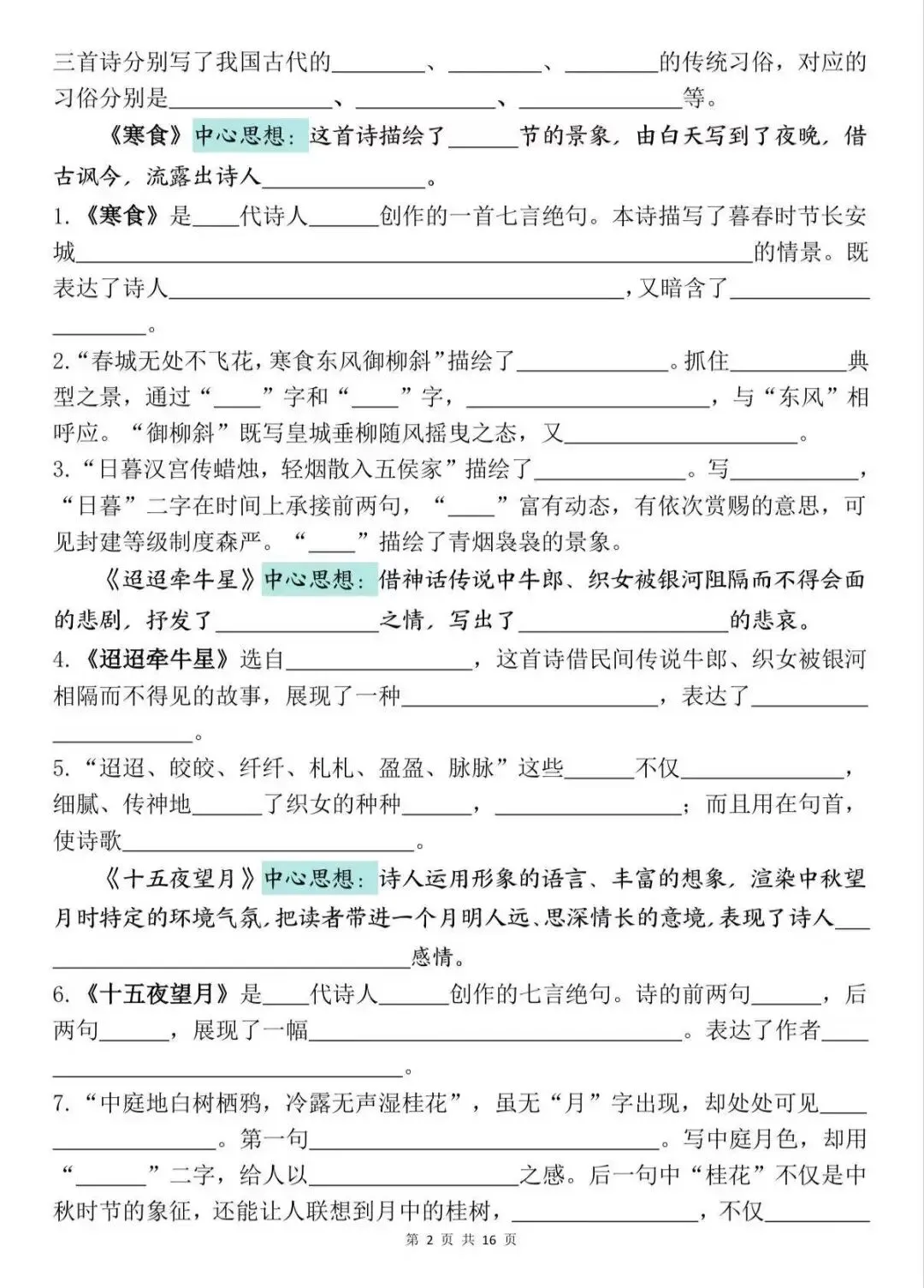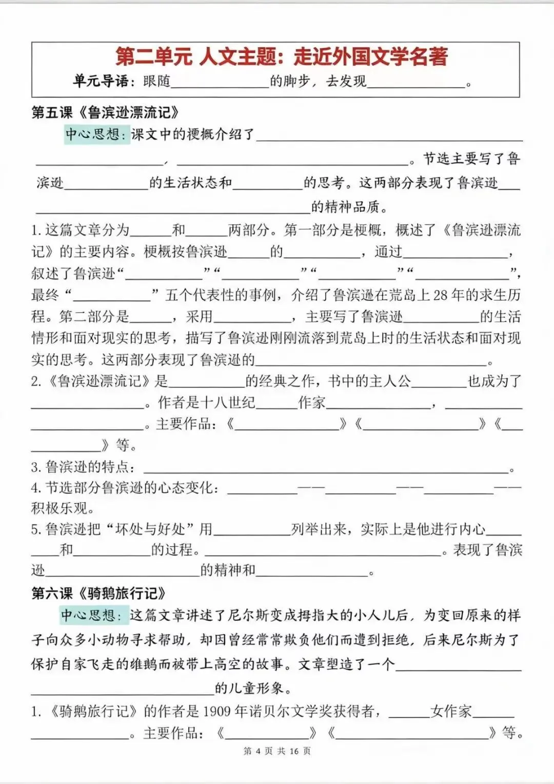 【自填版+背诵版】六年级下册语文全册课文重点梳理期中期末复习考试必考重点,可打印