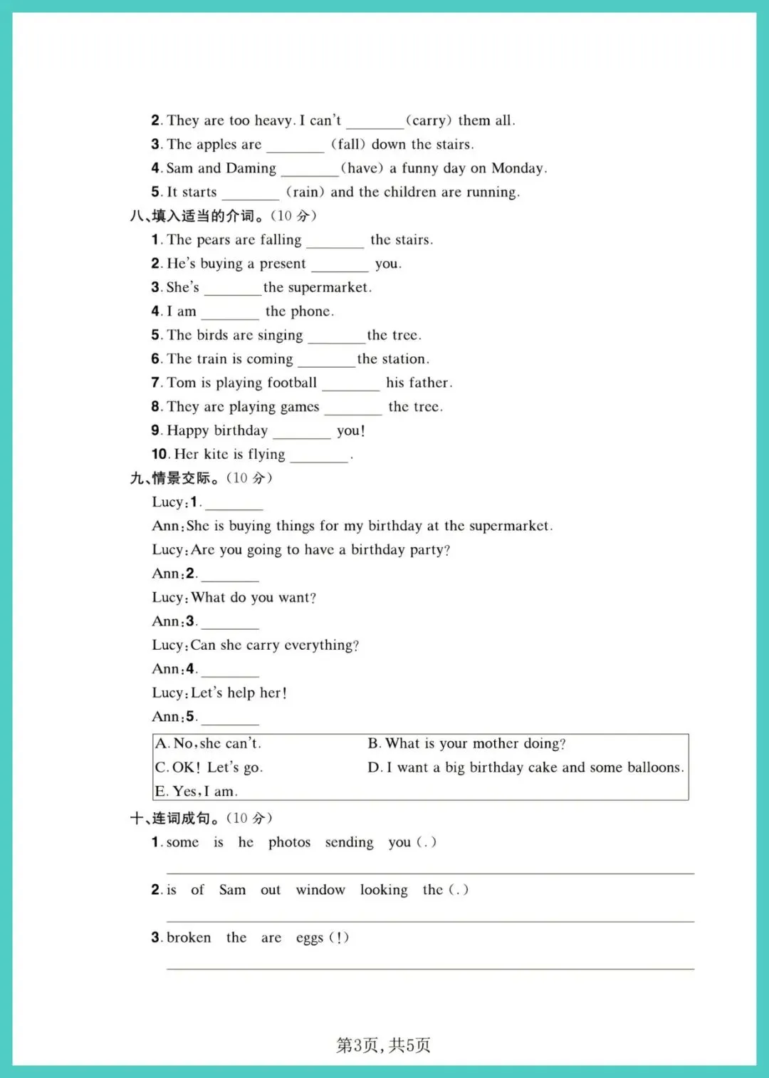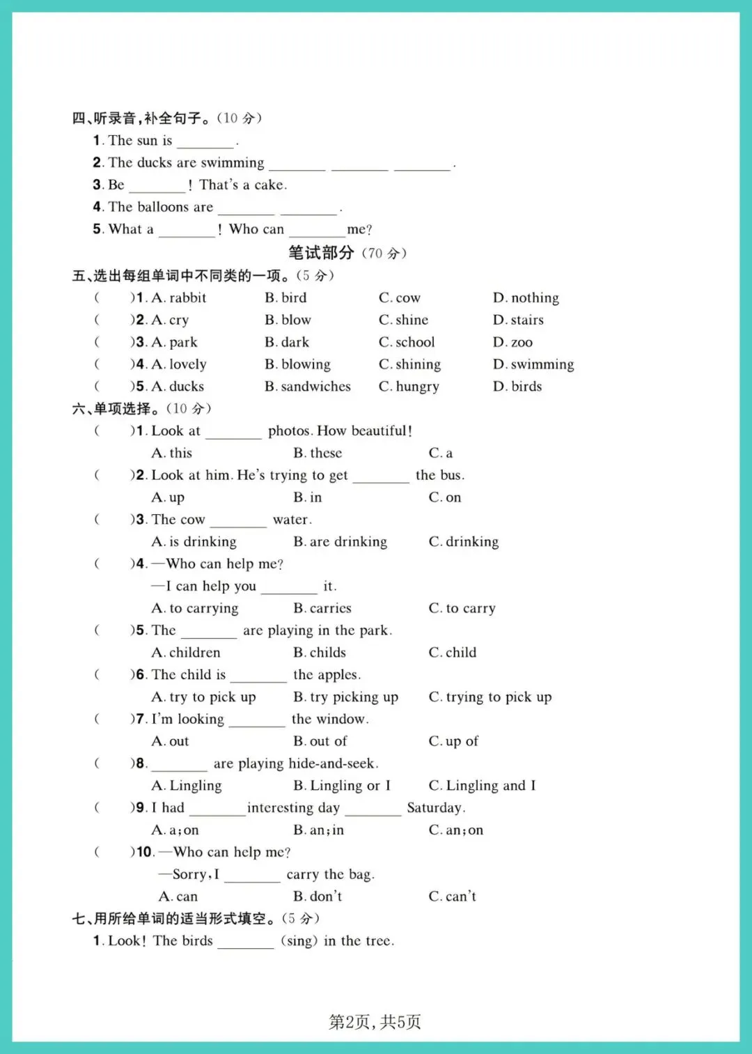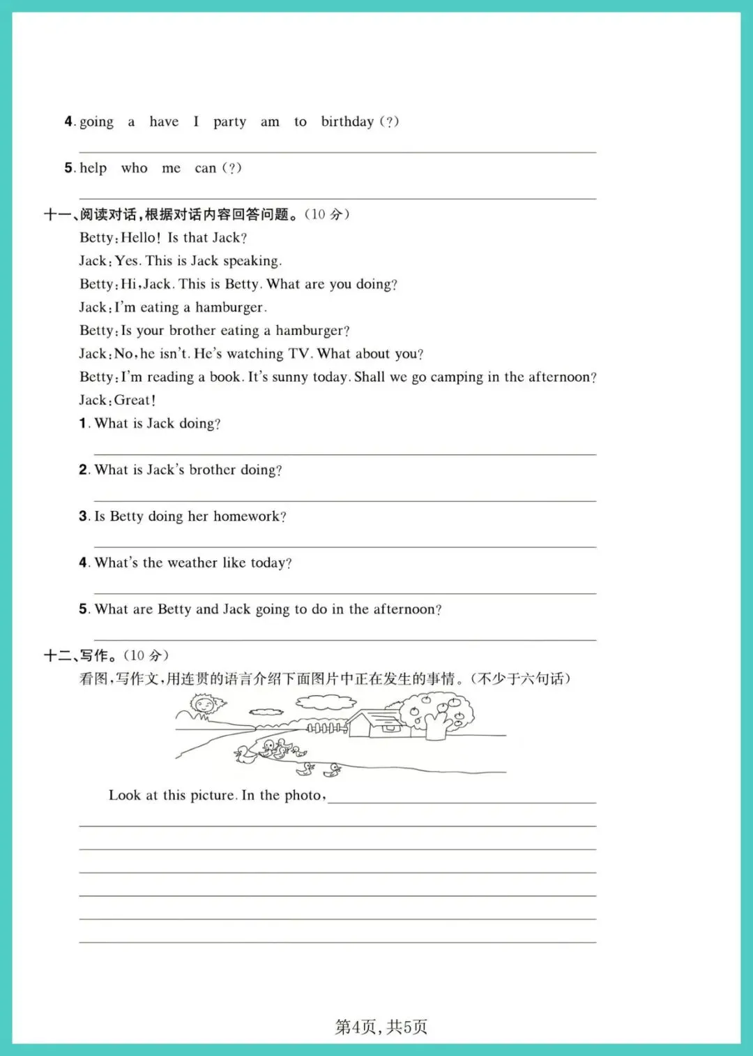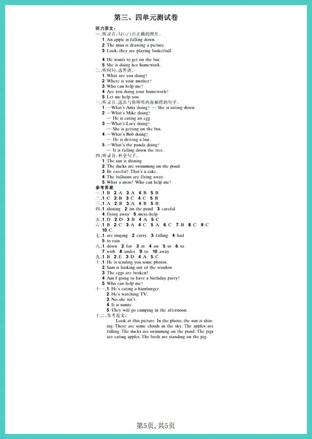 六年级(下)英语_第三、四单元质量检测卷《外研版》,共5页,电子版可打印可下载。这份资料内容丰富,结构清晰,包含了核心知识点和练习题,帮助孩子巩固学习成果,及时发现不足之处,查缺补漏。有需要的家长抓紧打印出来给孩子练一练吧!