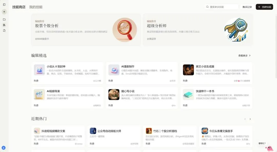 简单说,你可以理解为它是各种AI Agent的集合平台。写周报、做数据分析、处理文档、生成会议纪要……每个场景都有专门的智能体在跑。