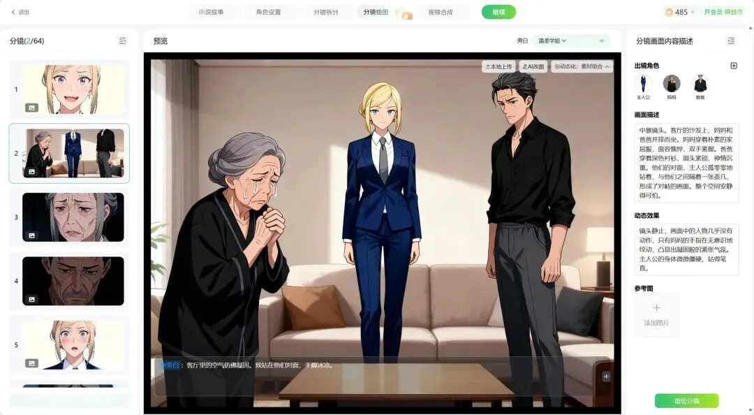 功能上,AI生成、创意激发、内容优化、多格式转换都有。我试了一下”小说转视频脚本”这个功能,对于做短视频的自媒体来说,把已有的文字内容二次加工成脚本,还是挺省事的。