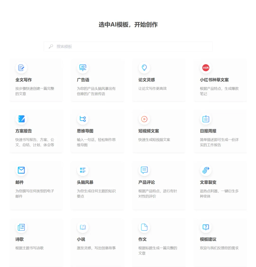 模板也比较全,广告语、周报、邮件、作文这些场景都有覆盖。写完还能自动审阅一遍,标记错别字和不通顺的地方。