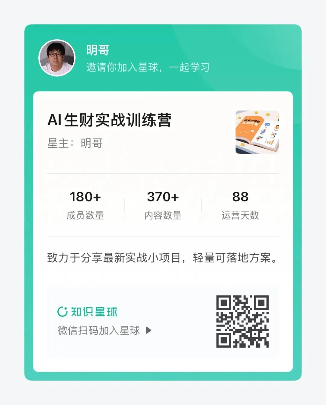 这个快闪项目,是AI生财实战项目星球的福利项目,可以轻量化的参与进来。