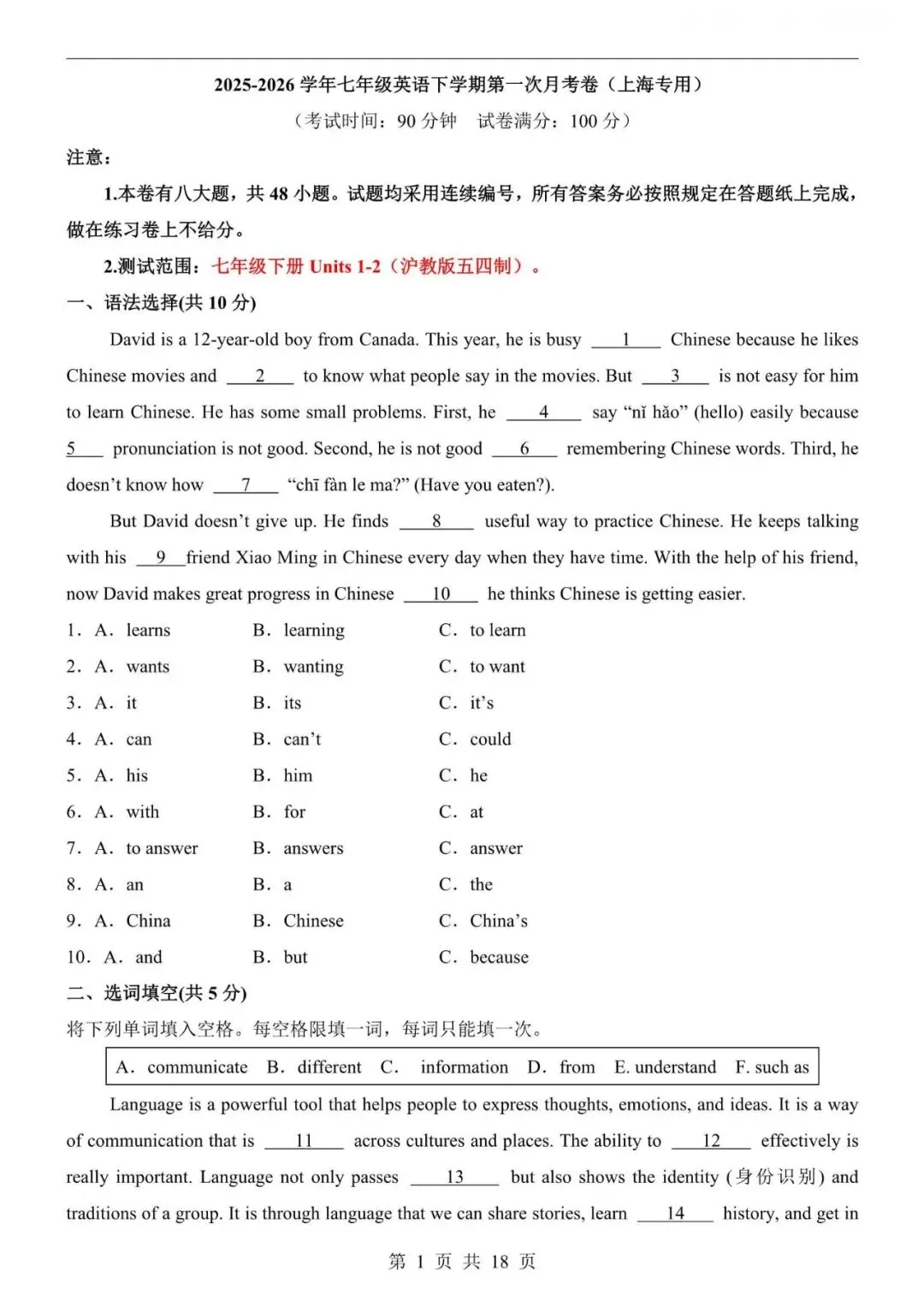 七下月考|26春沪教54版-七下英语第一次月测试卷,含答案(电子版可下载打印) 七下月考|26春沪教54版-七下英语第一次月测试卷,含答案(电子版可下载打印) 资料为PDF高清无水印 共18页,可打印 展示前5页内容 获取电子打印版请拉到文末查看 (点击可查看大图,超清晰) ▲因篇幅有限,只展示部分资料截图 ▲ 完整版电子版 ↓↓↓ 点击资料下载 获取更多资料,请关注公众号