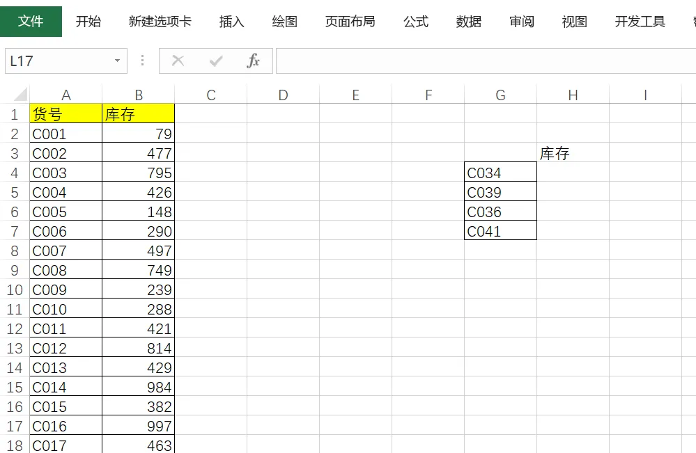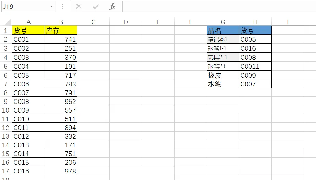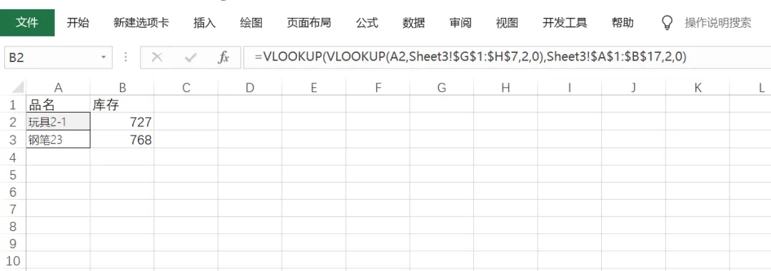 VLOOKUP(货号,Sheet3!$A$1:$B$17,2,0)–根据已经查出的货号查找库存