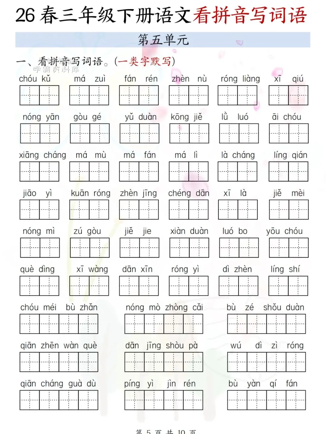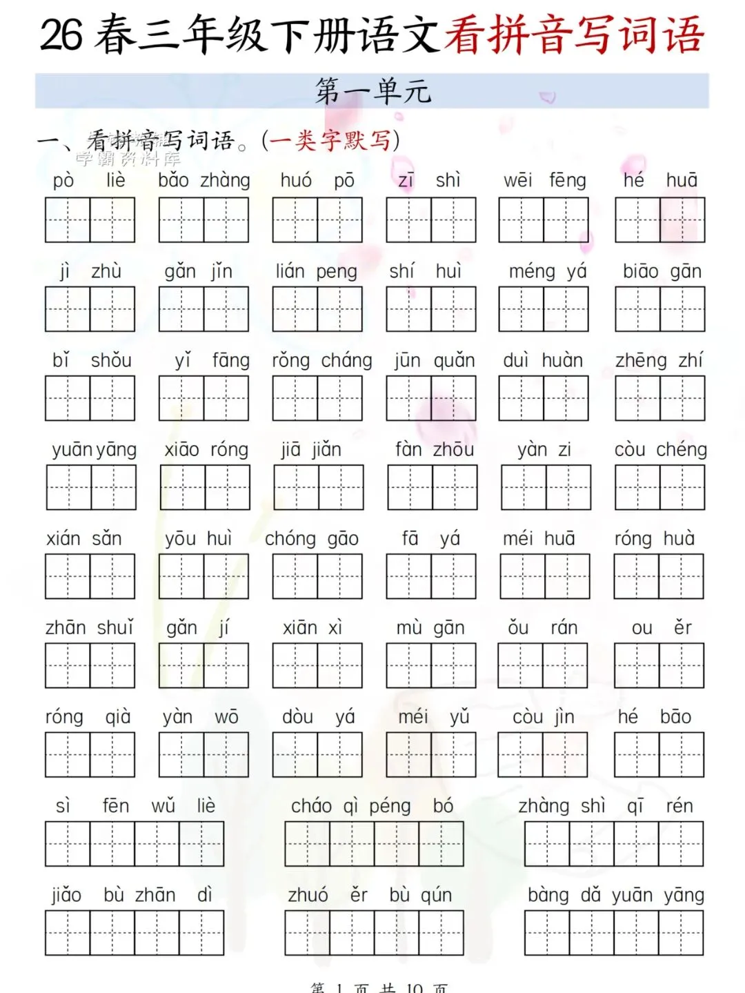 这份【看拼音写词语】练习资料紧扣课本生字词,涵盖本学期必学必会的重点字、易错字、多音字✅