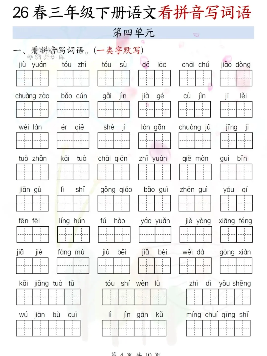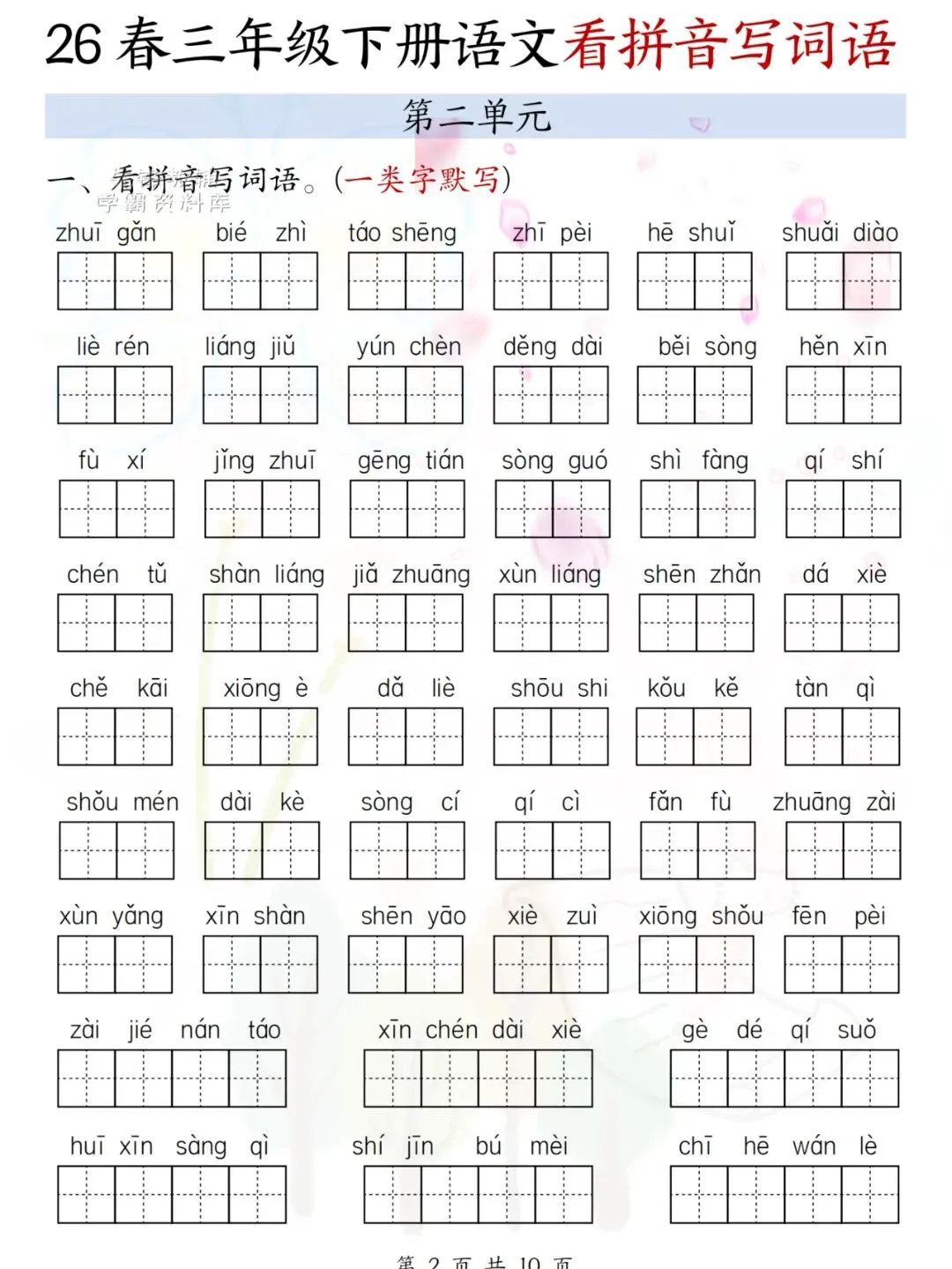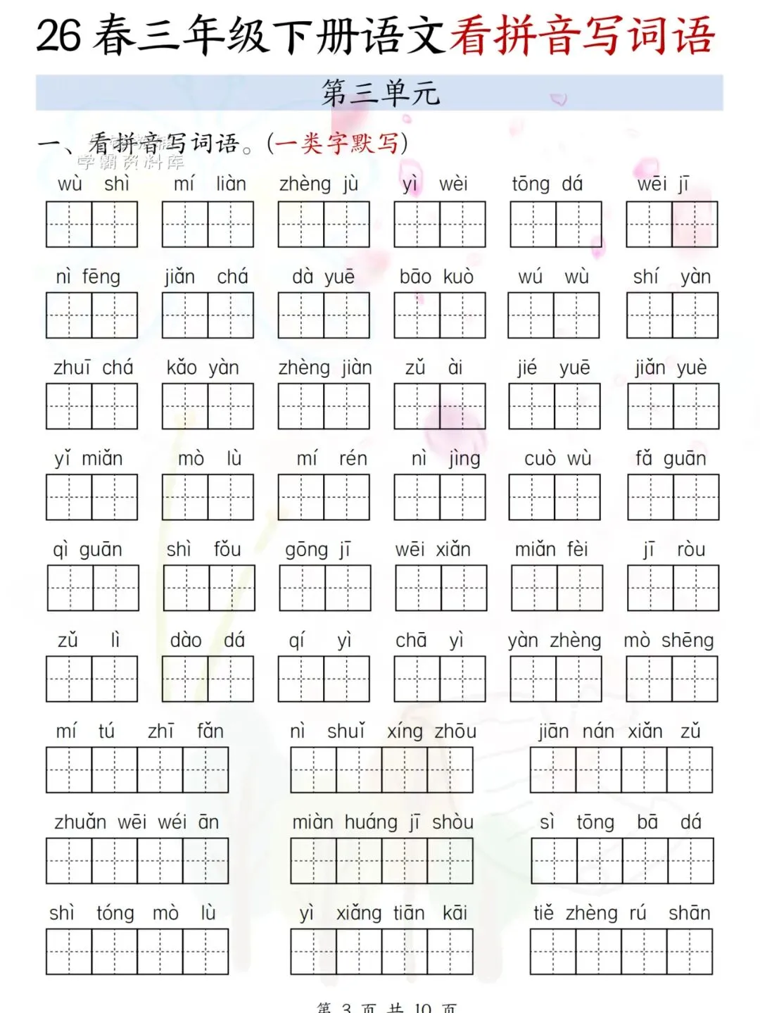 26春三年级下册语文看拼音写词语 电子版可下载可打印