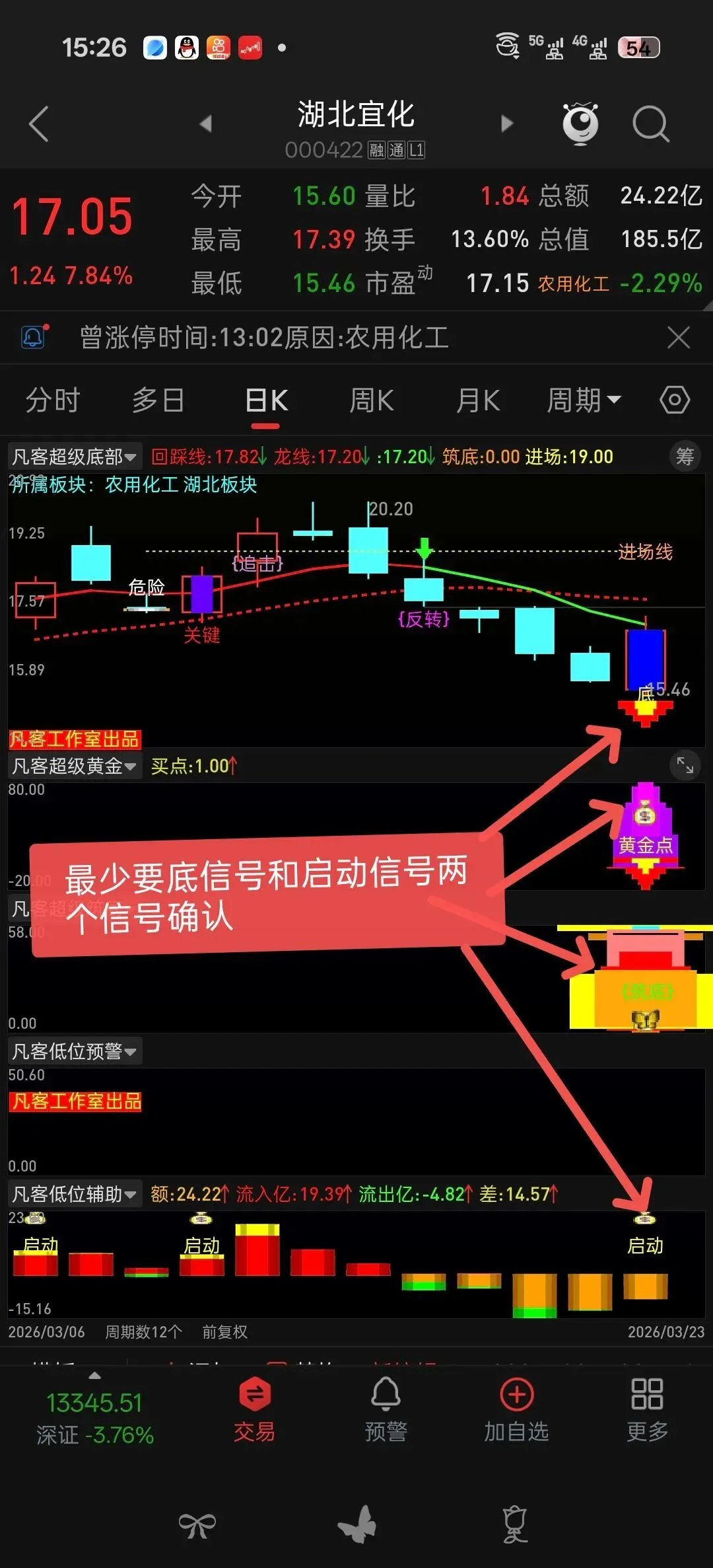 DRAWTEXT(P,LOW*0.91,’↑暗仓’),COLORWHITE;