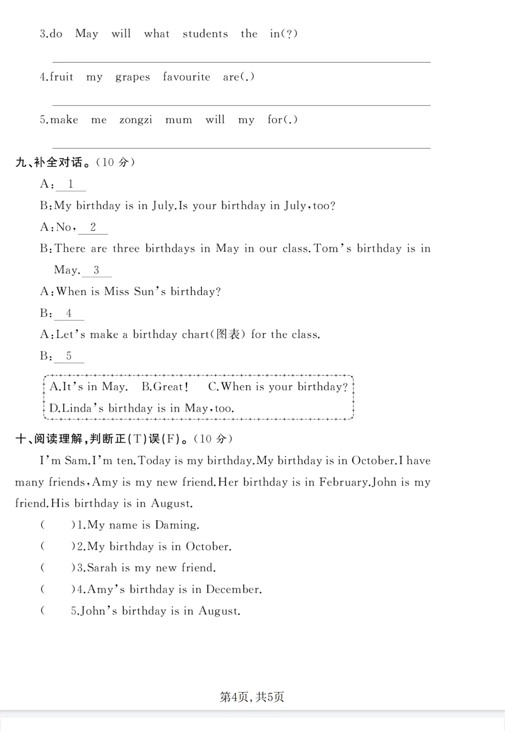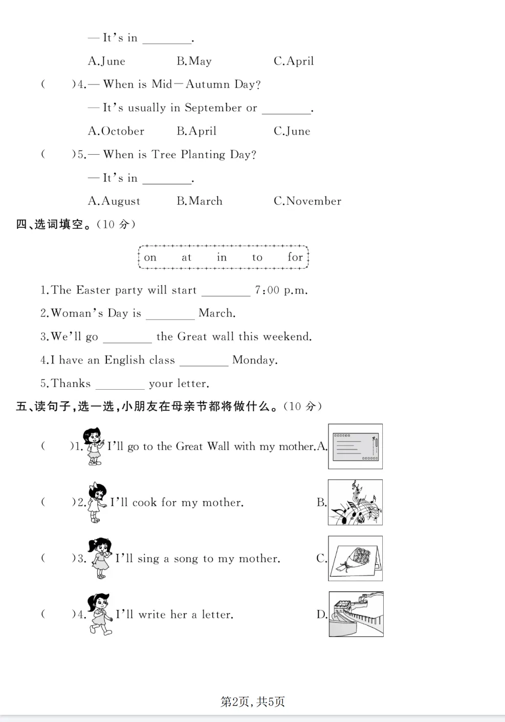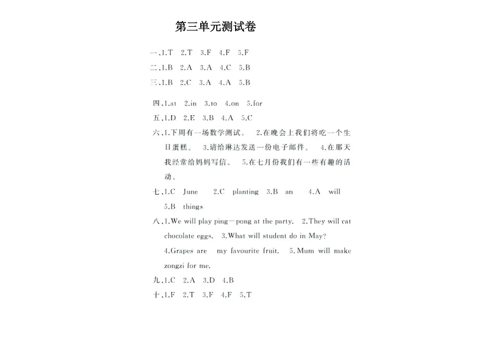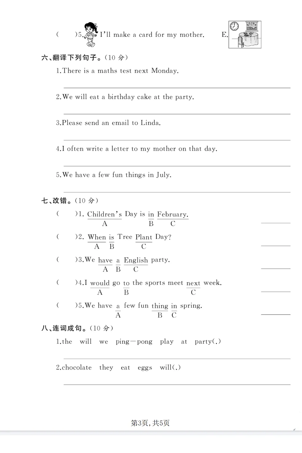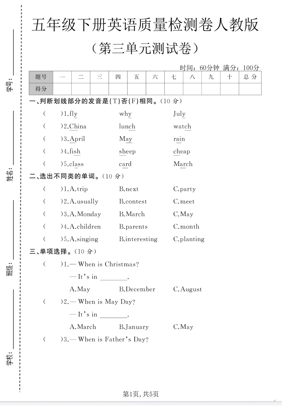 26春 小学英语 人教PEP版 五年级下册《第三单元质量检测卷》单元卷子 含答案 2套 PDF,可打印!