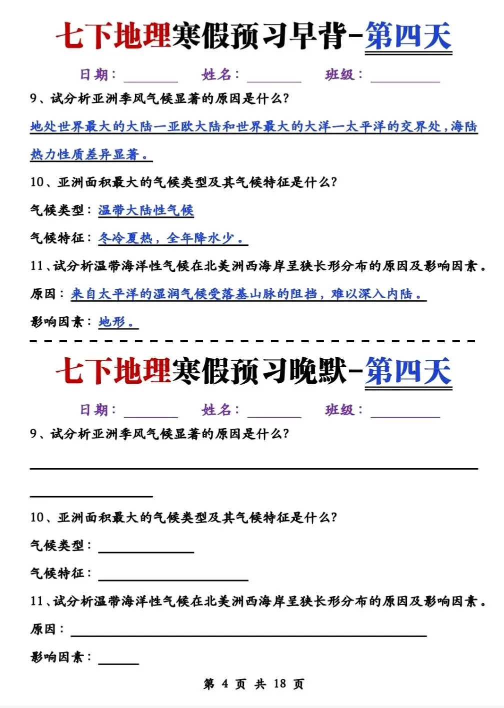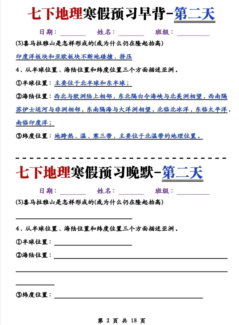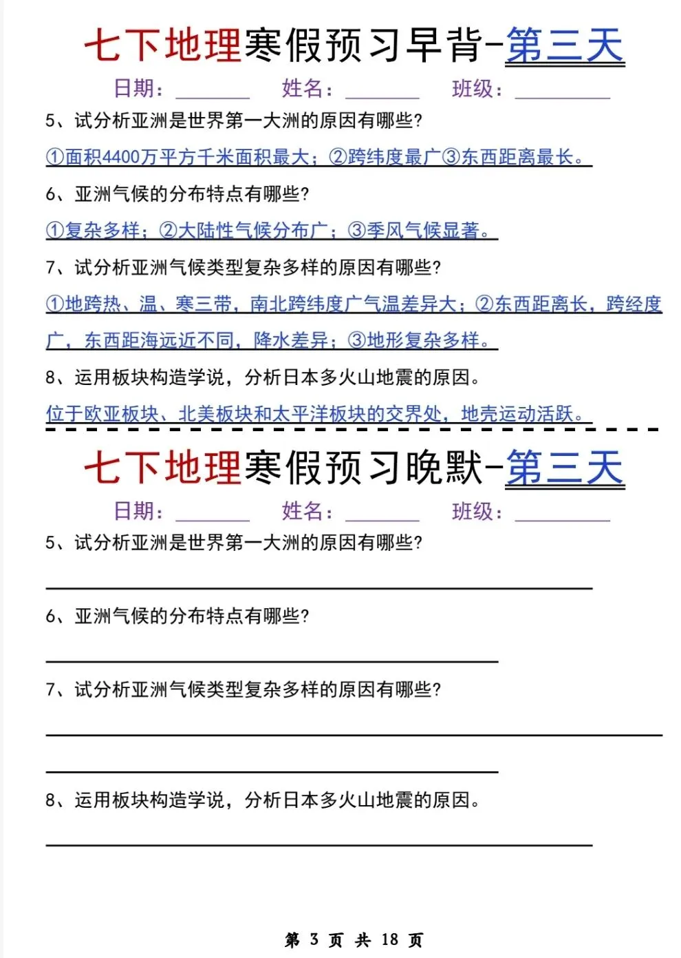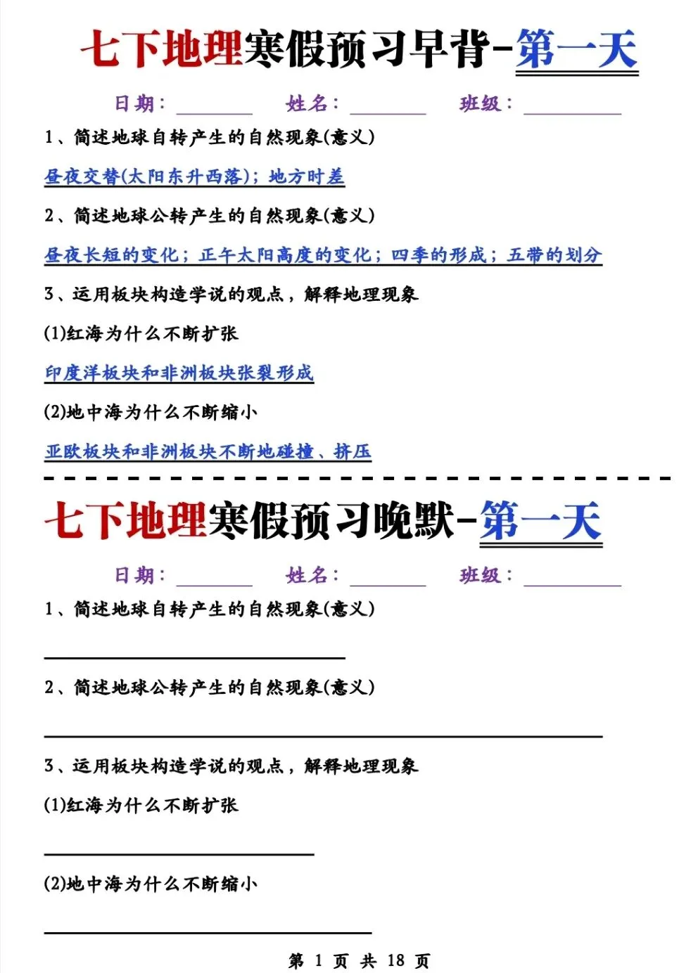 七年级(下)地理《早读晚默》电子版pdf可下载打印