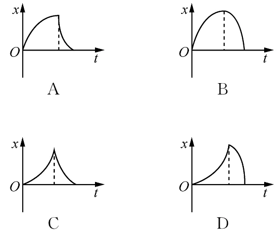 【解析】 由v-t关系图像可知,质点开始沿正方向做匀减速直线运动到零,然后反向做匀加速直线运动,x-t关系图线的切线斜率表示瞬时速度,可知瞬时速度先减小,后反向增大,另外反向运动时加速度大于原来的加速度,所以运动相同距离所用时间短,故B正确.