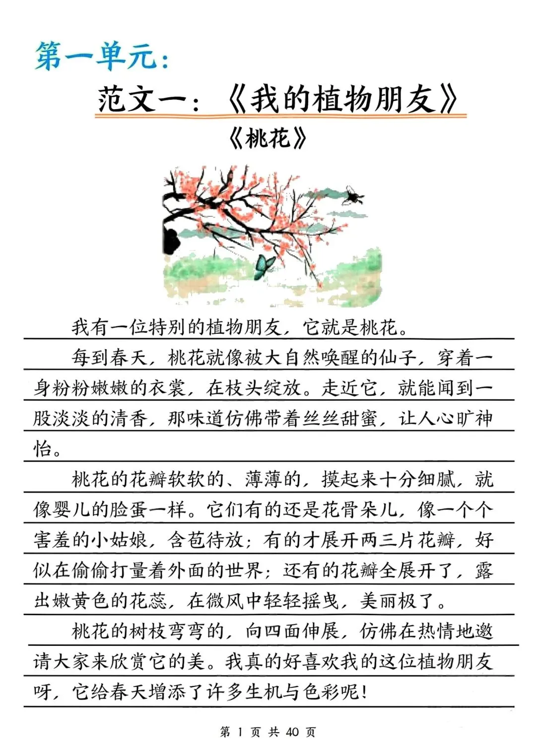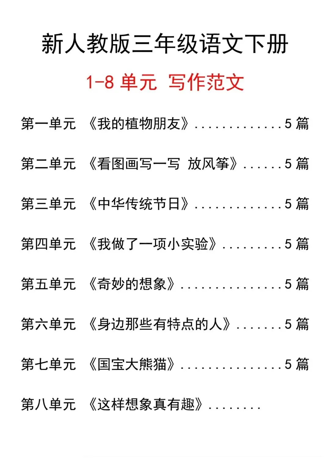 三年级下册语文1-8单元写作范文 高清电子版可打印