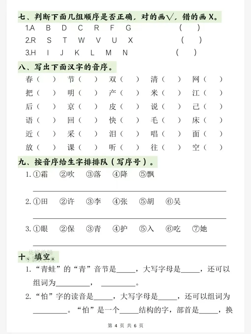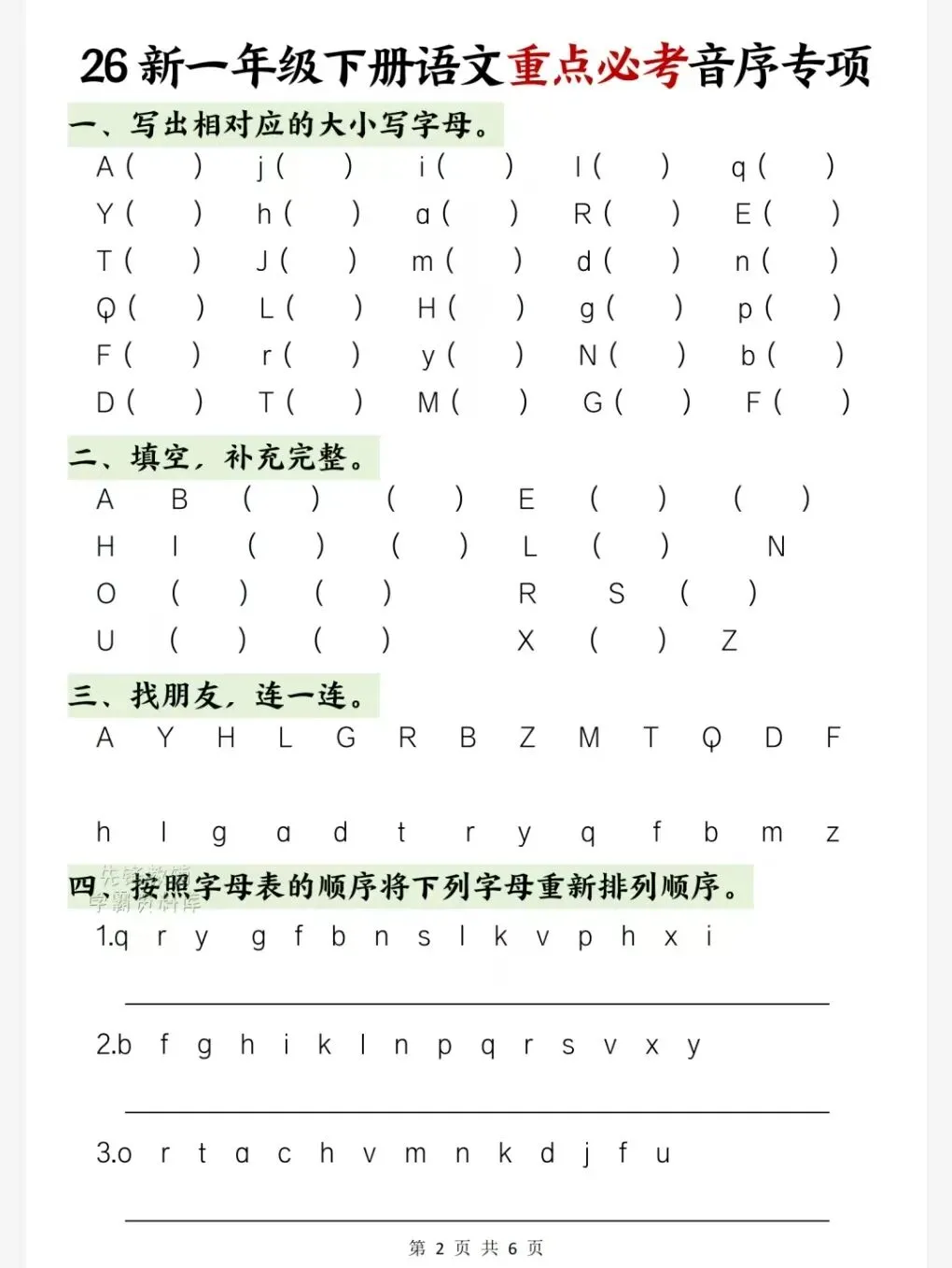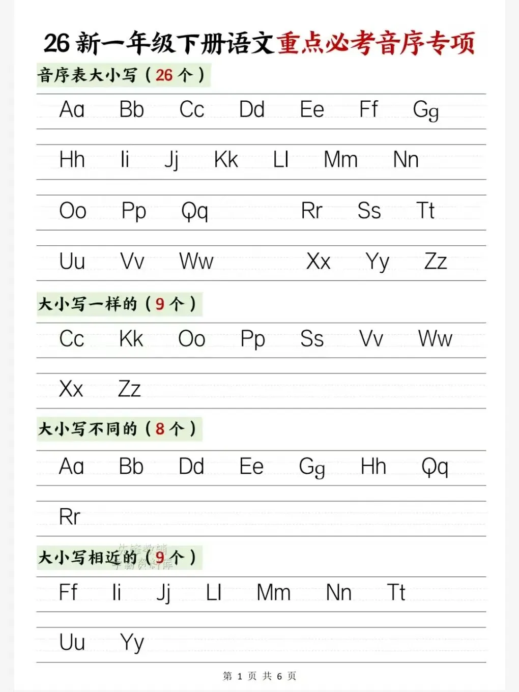今日为大家免费分享,26春一年级下册语文重点必考音序专项~附电子版链接可打印~建议分享到班级群/年级群,让其他家长打印出来,帮助孩子学习,一起成长。