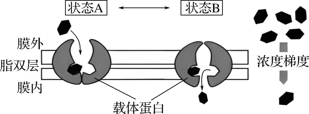 【解析】该物质进入细胞需要载体蛋白,顺浓度梯度,不消耗能量,为协助扩散,A正确;红细胞吸收葡萄糖的方式为协助扩散,所以该物质可能是葡萄糖,B错误;载体蛋白通过构象改变介导某物质进入