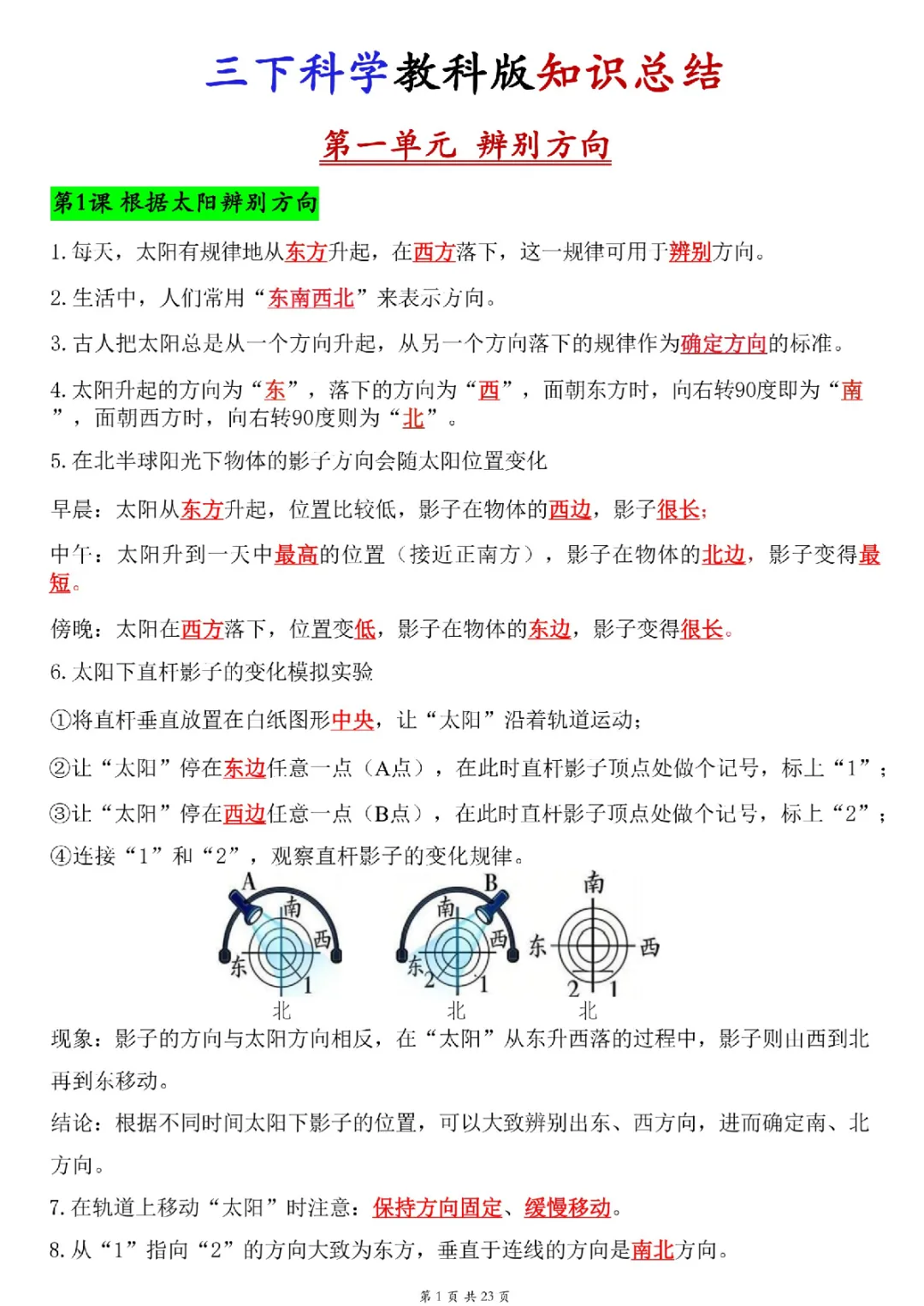 26春新教科版三年级(下)科学《全册重点知识总结》电子版可打印