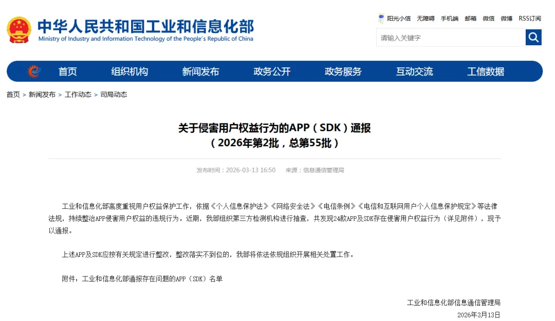要求上述App及SDK应按有关规定进行整改,整改落实不到位的,工业和信息化部将依法依规组织开展相关处置工作。