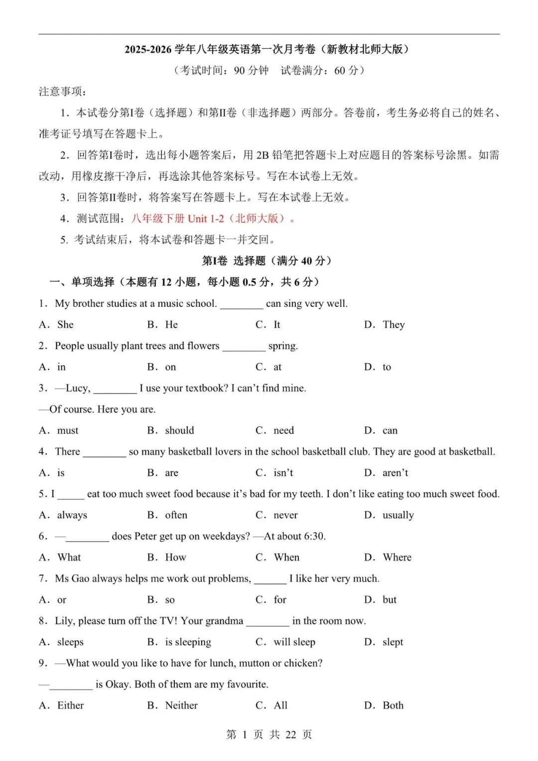 七下月考|26北师版-七下英语第一次月考测试卷,附答案解析,完整可打印! 七下月考|26北师版-七下英语第一次月考测试卷,附答案解析,完整电子版可打印! 资料为PDF高清无水印 共22页,可打印 展示前5页内容 获取电子打印版请拉到文末查看 (点击可查看大图,超清晰) ▲因篇幅有限,只展示部分资料截图 ▲ 完整版电子版 ↓↓↓ 点击资料下载 获取更多资料,请关注公众号