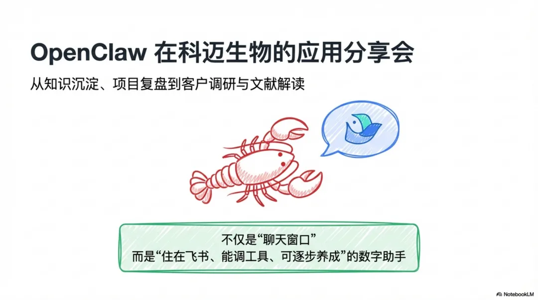 3月27日,我在科迈生物内部进行了一次关于OpenClaw实践的分享会。这篇文章是我在分享会上发言的系统整理,希望能向大家完整地、深入地介绍,我们在科迈生物是如何“养”这只“龙虾”的。