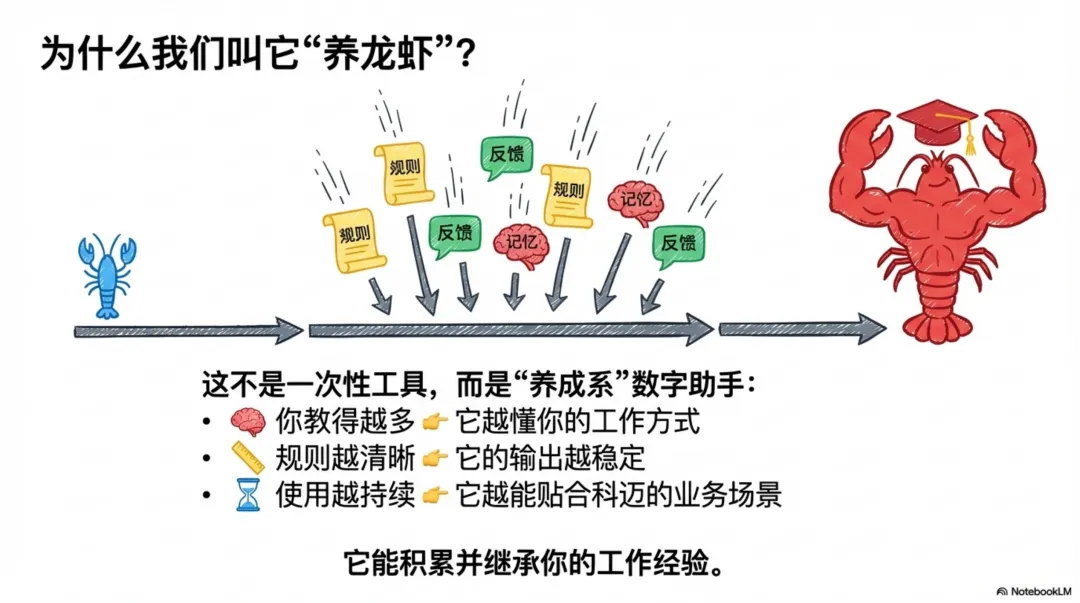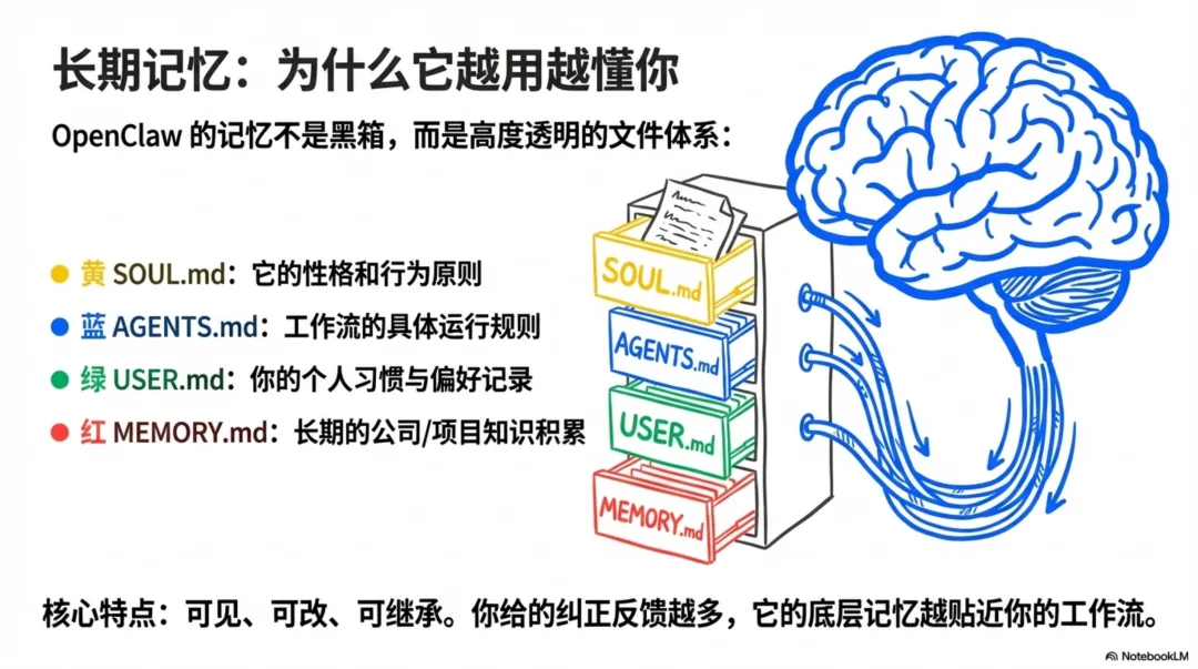 我们常常开玩笑说“养龙虾”,这个“养”字,精准地捕捉到了使用这类工具的第二个核心精髓。它不是一个出厂设置即固化的静态产品,而是一个具有成长性的、可以被持续塑造的动态伙伴。这个“养成”的过程,主要通过其独特的长期记忆(Long-term Memory)和技能(Skills)系统来实现。