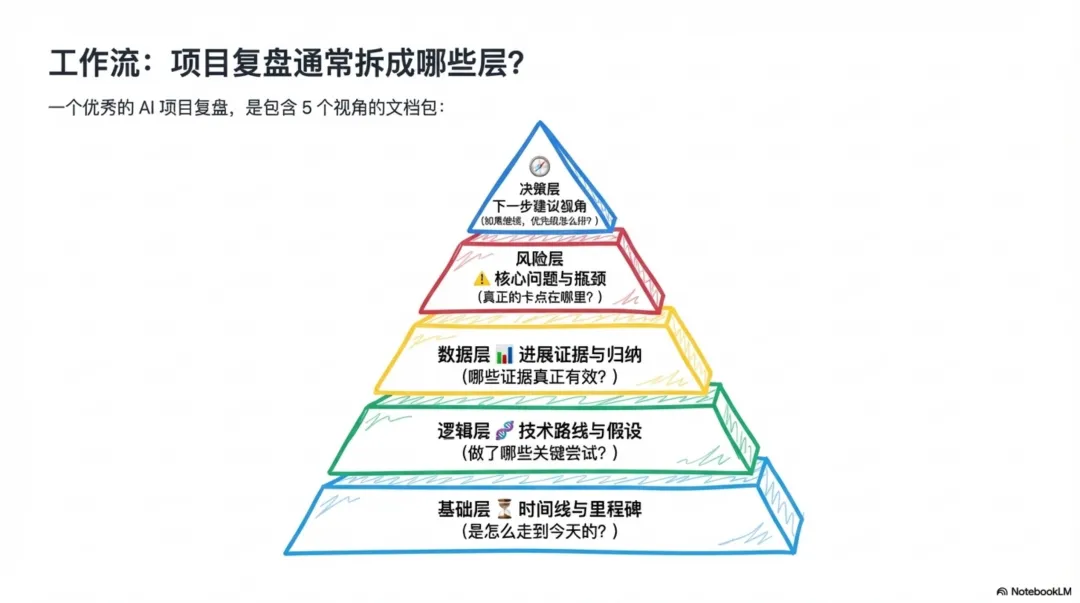 创造的价值:「明序」的复盘报告常常带给我们惊喜,甚至可以说是“惊吓”。因为它没有任何人类的偏见和情感,它能“看到”所有被我们忽略的细节。例如,在一个真实的项目复盘中,它敏锐地指出了多个核心问题:“项目目标在“合作交付”和“方法验证”之间反复切换;外部合作节奏与内部研发节奏并不一致。”这种基于全量数据、绝对客观的第三方视角,如同为项目做了一次精准的“CT扫描”,帮助我们发现了许多流程和管理上的“病灶”,其价值远超任何形式的人工总结。