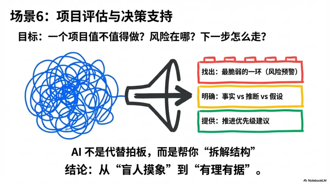 创造的价值:它不能替代人类做出最终的决策,但它提供了一个强大而客观的“脚手架”,确保我们的每一个关键决策,都是在充分、结构化的信息和论证基础上做出的。它帮助我们识别潜在的认知盲点,区分确凿的事实与主观的推断,极大地提升了我们战略决策的质量和严谨性。