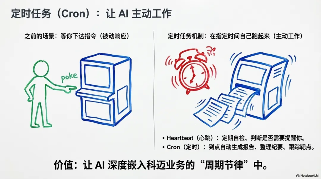 机制一:从被动响应到主动工作——定时任务 (Cron) 与心跳 (Heartbeat)