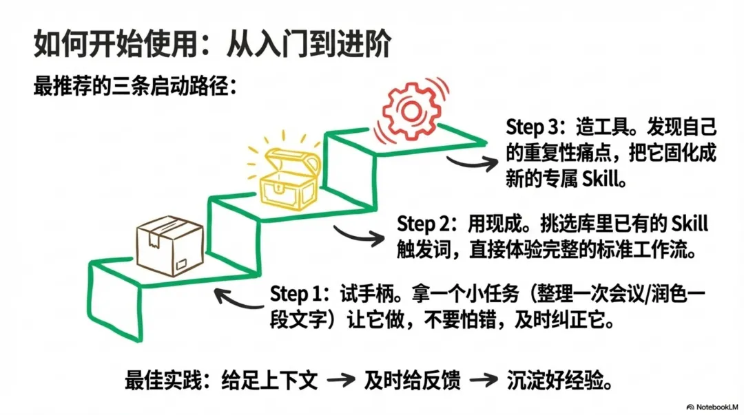 当你的团队或开源社区中已经有成员沉淀了一些成熟的Skill时,请毫不犹豫地去使用它们。这是体验AI助手真正威力、收获“早期红利”的最快途径。