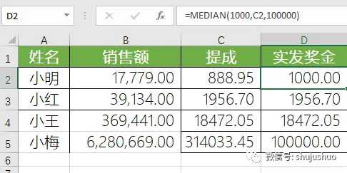 最好用的奖金提成计算公式,WPS 中位数函数median用法教程