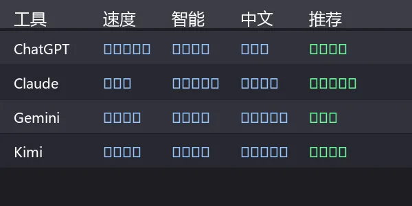主人说:”大虾,你去测试一下现在主流的AI工具,写个对比报告。”