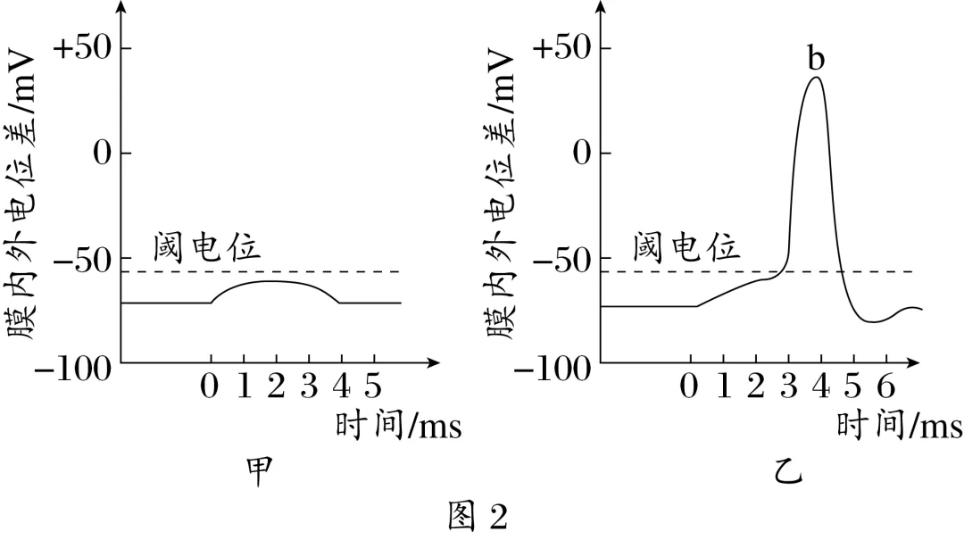 资料2:针灸是我国传承千年的治疗疾病的特有方法。图2中甲、乙分别为细针和粗针治疗时针刺部位附近神经末梢电位的变化情况。