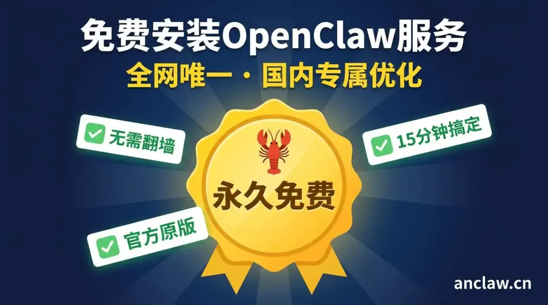 后来朋友告诉我有个叫 AnClaw 的服务,专门帮国内用户免费安装OpenClaw。