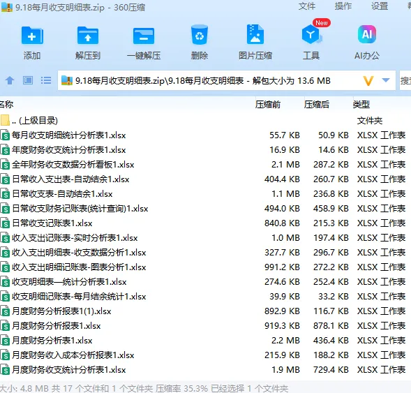 除了月报表以为,涉及到的月度收支报表分析模板,小南也整理了现成的表格模板,需要的财务人员可以自行领取套用。