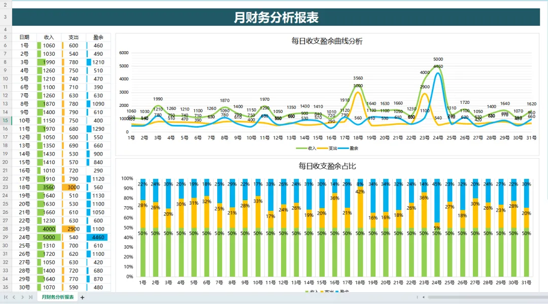 财务月报表模板Excel!带公式,财务一键套用自动生成可视化财务报表分析图形!