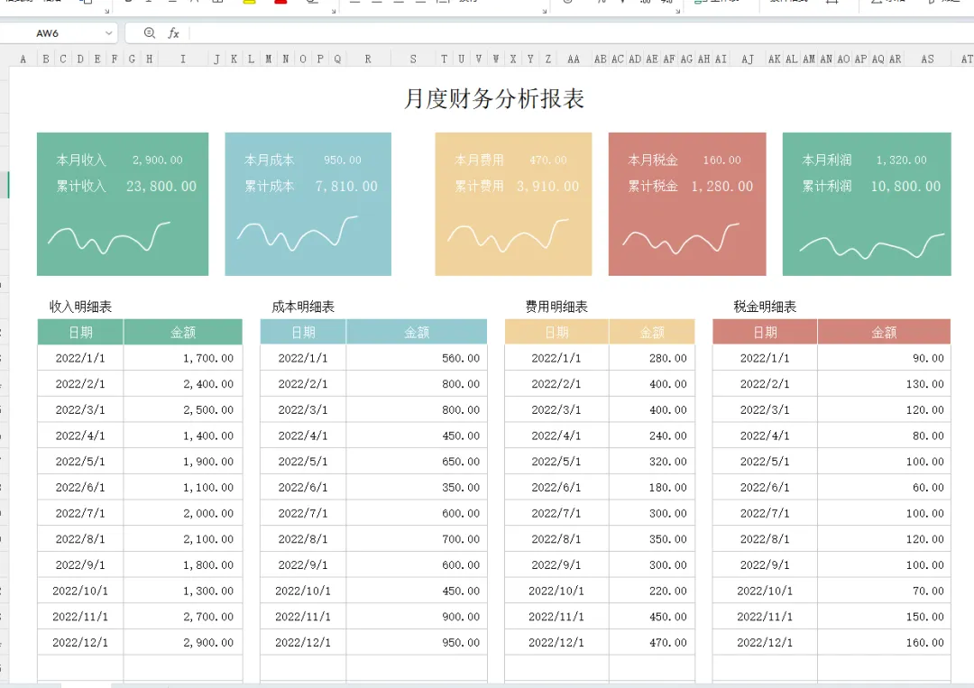 财务月报表模板Excel