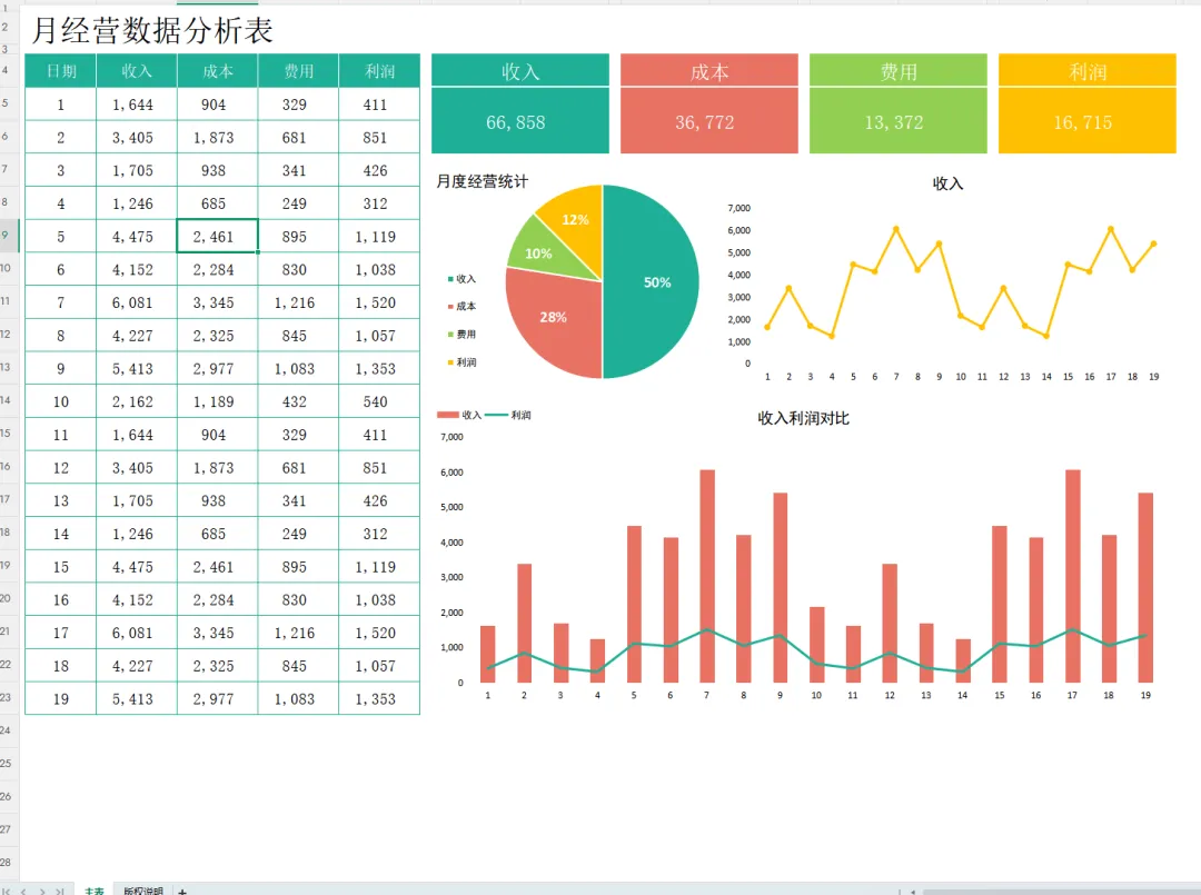财务月报表模板Excel!带公式,财务一键套用自动生成可视化财务报表分析图形