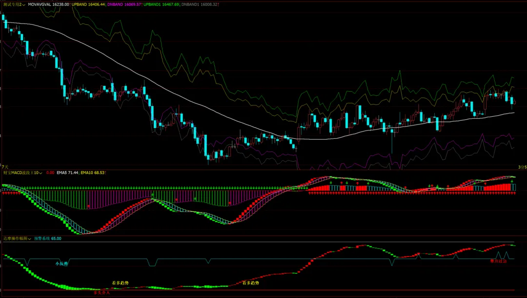指标公式源码《ATR通道》双通道轨道指标-三价均线+ATR通道公式-上下轨自动识别趋势转折信号
