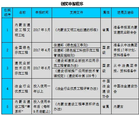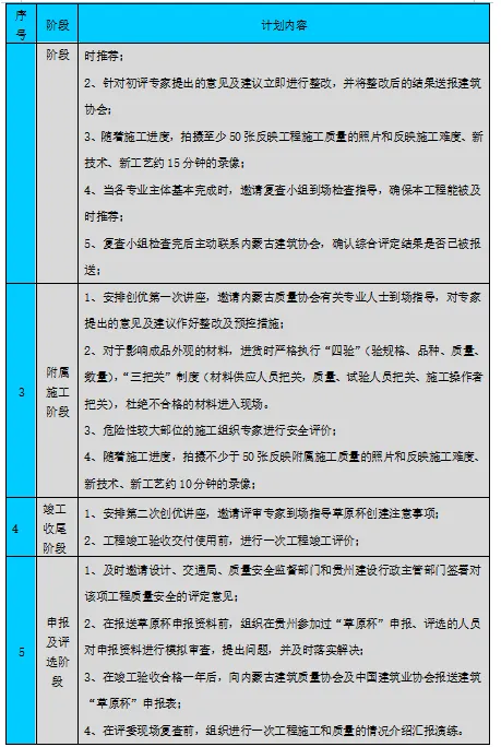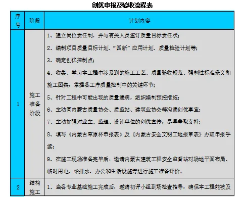 根据内蒙古赤峰县G306项目创优阶段目标,确定本工程的总体创优申报顺序如下:
