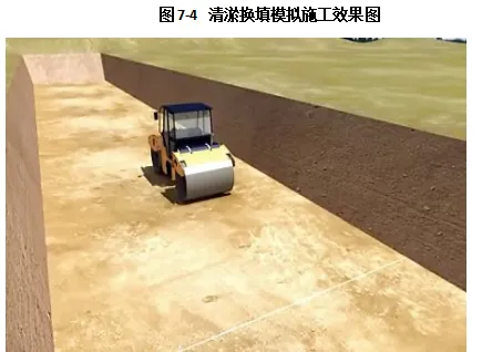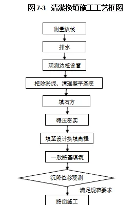 本工程多处软土地基,处理深度多数在2~3米,处理方案均为换填,材料为路基挖石方。