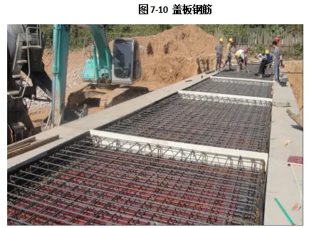 盖板钢筋绑扎时注意将吊环与主筋绑扎牢固,以保证起吊和安装安全。
