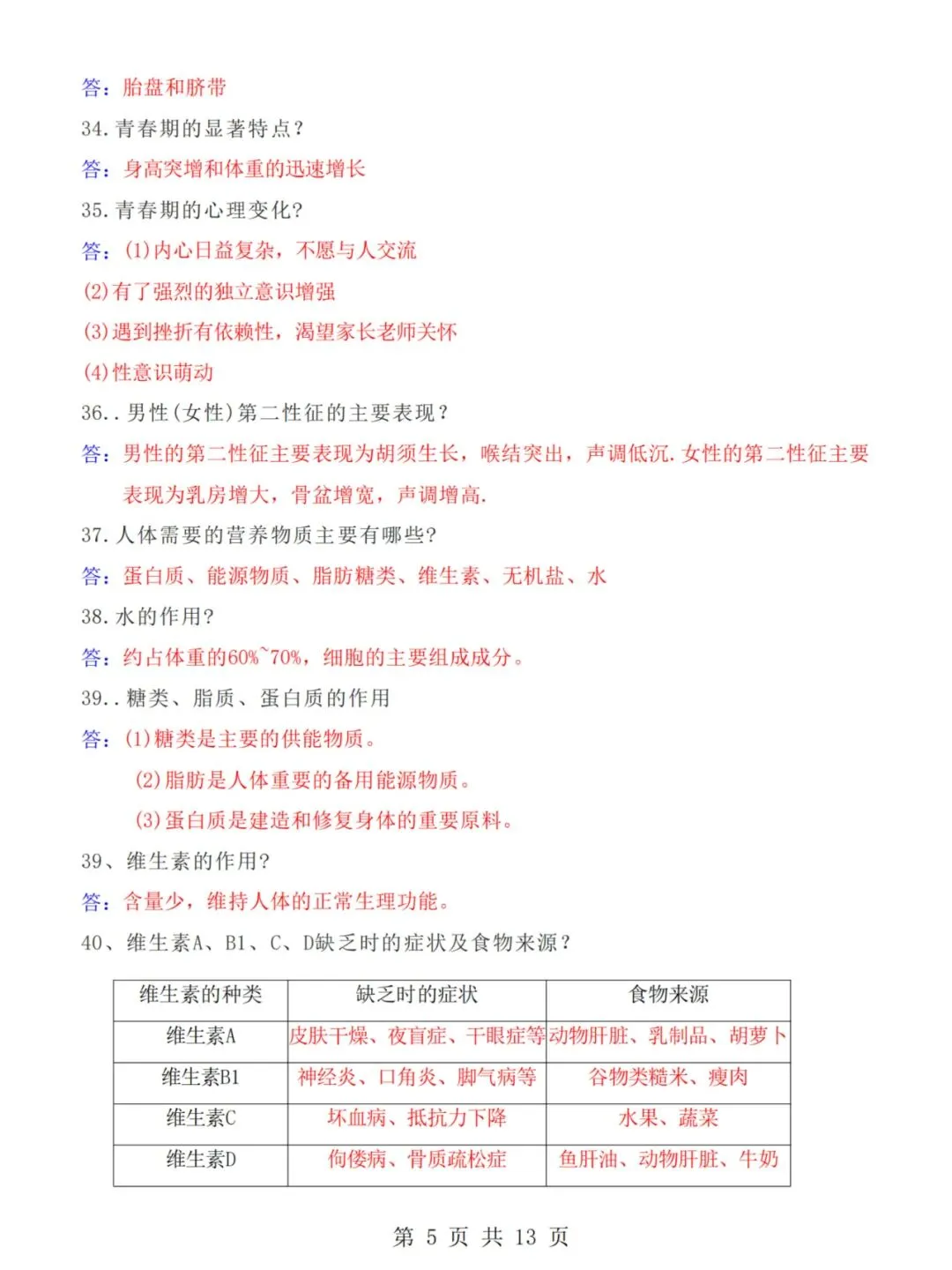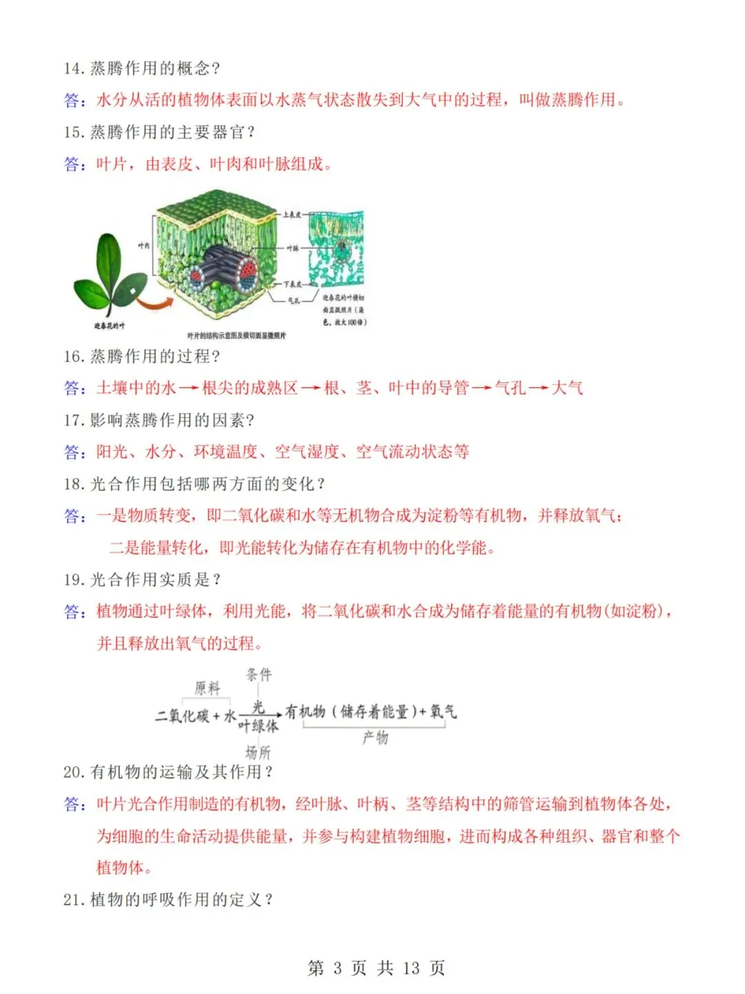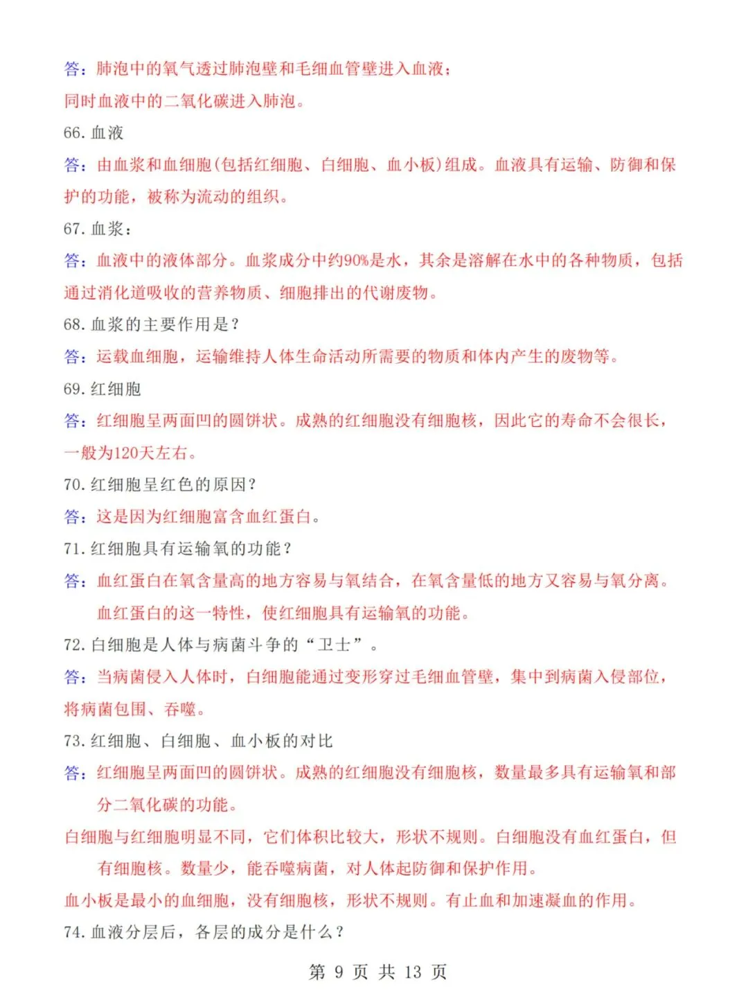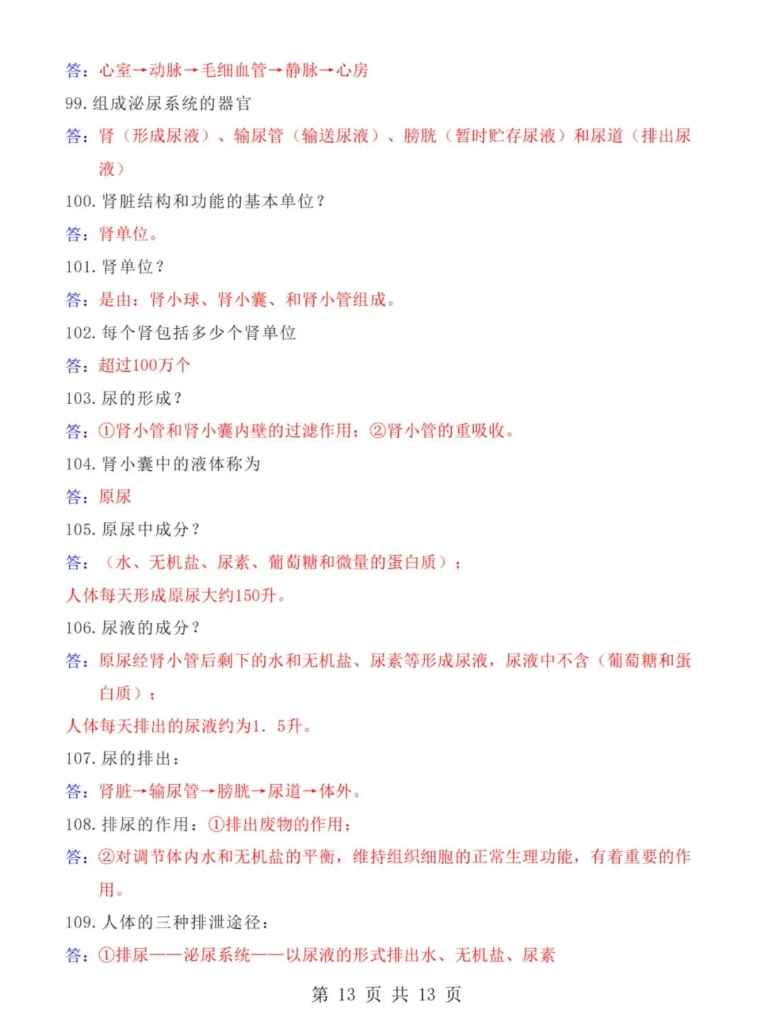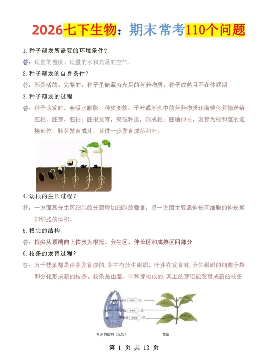 今天老师为大家整理好了辅导内容:七年级下册生物常考 110 题(含解析)电子版可打印
