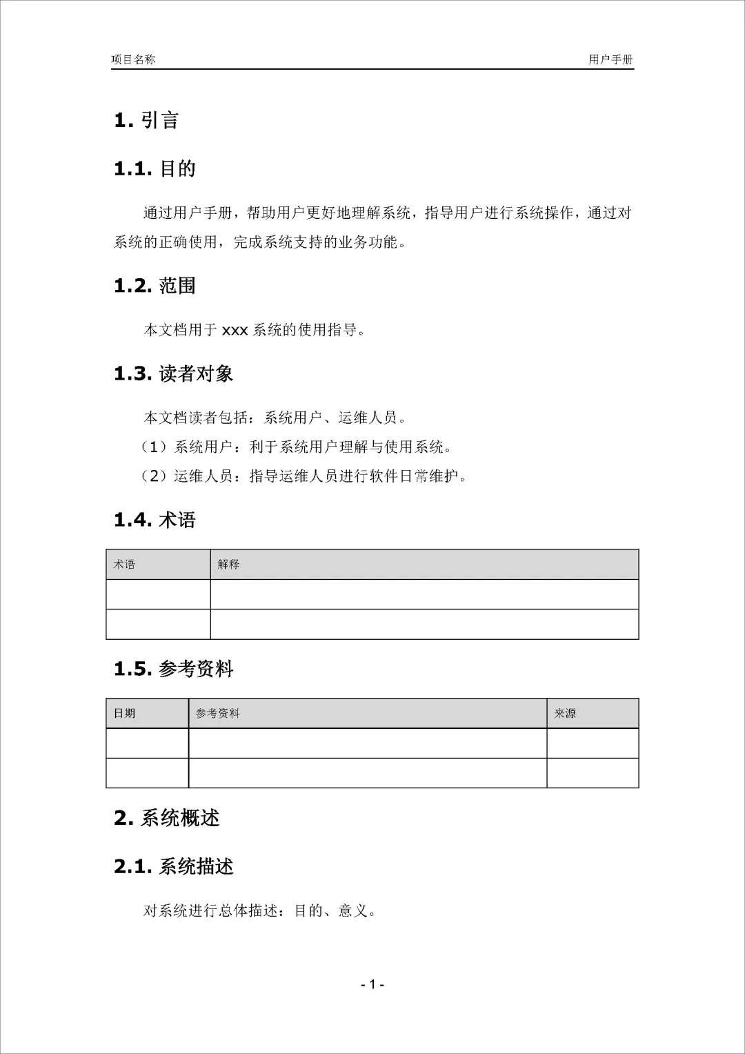 项目名称-用户手册.doc(Word模板)