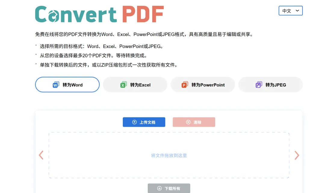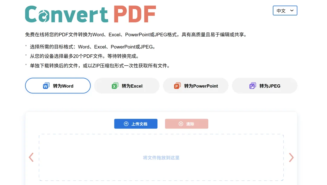 在线 PDF 转 Word、Excel、PowerPoint、JPEG。