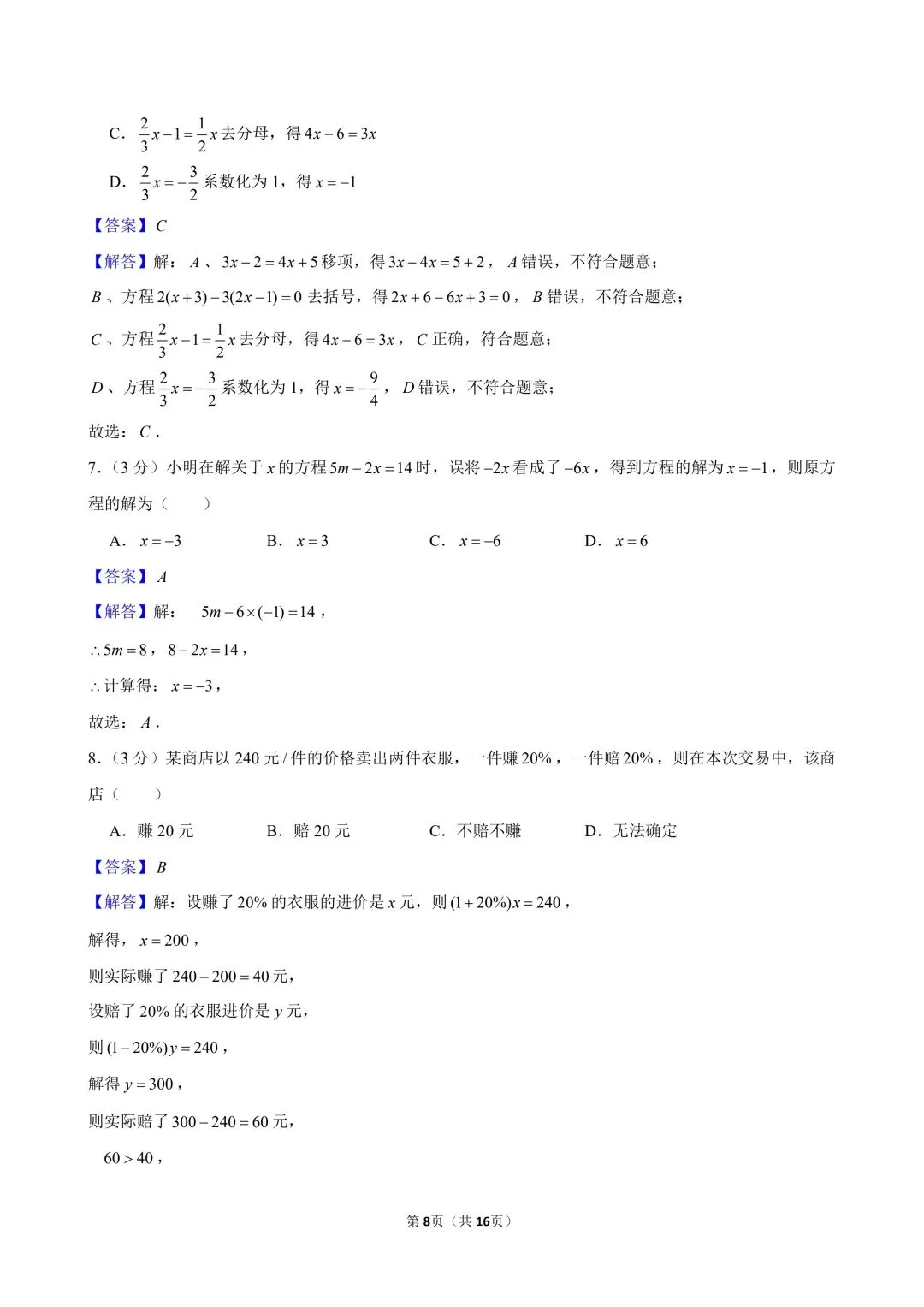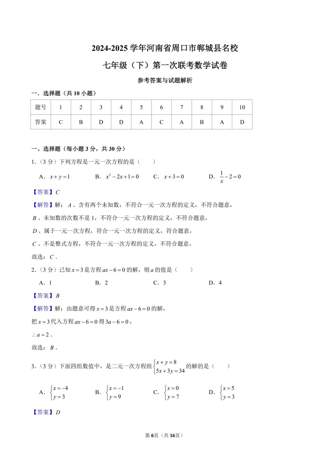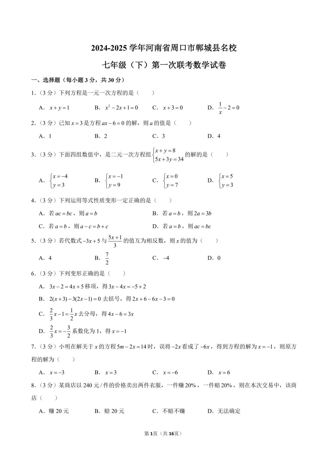 26年春华师版数学七年级初一下册第一次月考测试卷【附答案解析】丨高清电子版可打印(330)
